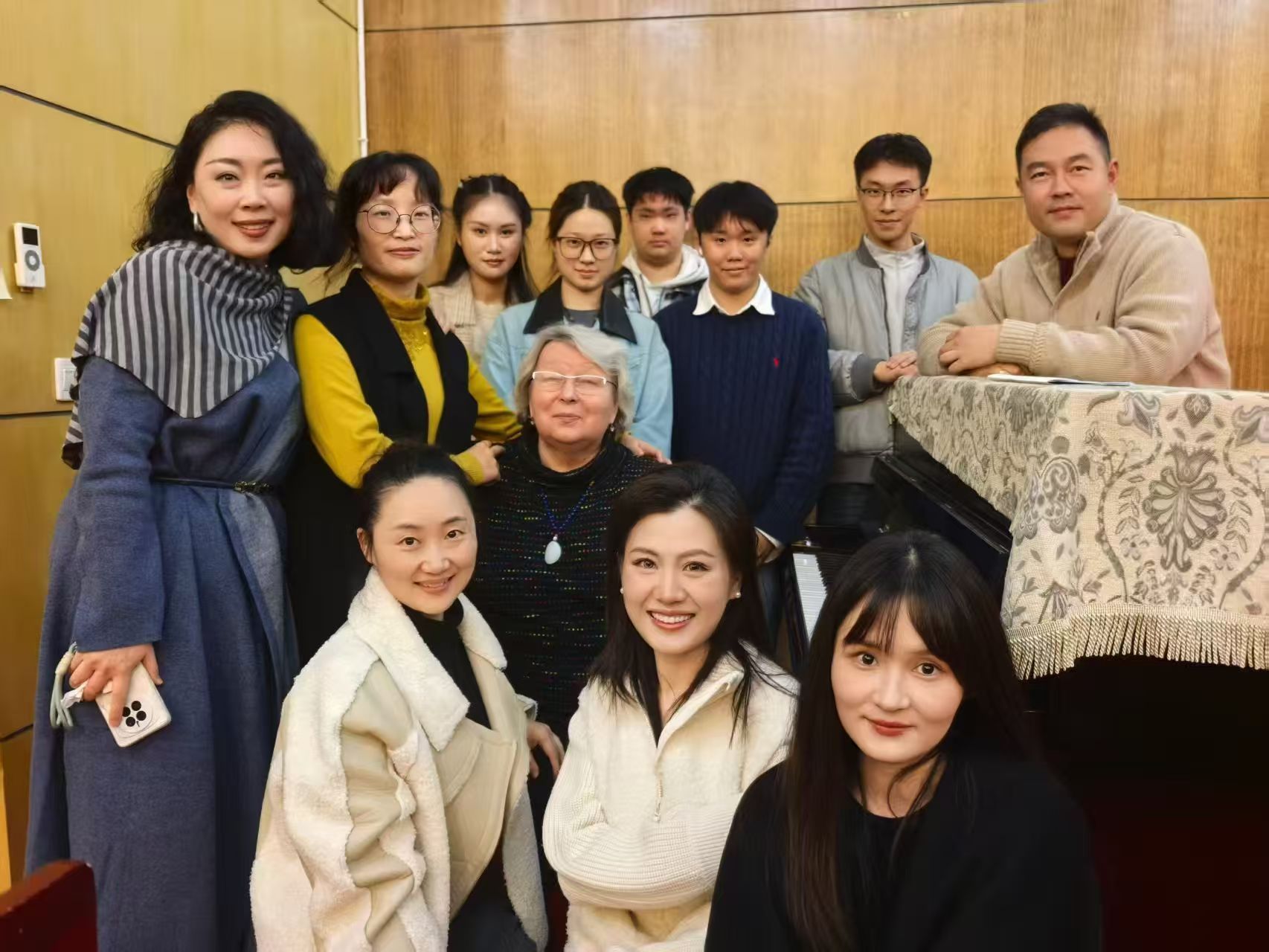 ondina教授从专业发声技巧到作品演唱处理等方面对音乐系师生进行了细心指导。这场艺术交流是学院加强中俄音乐文化对话和艺术交流的具体实践。分享会期间,Olga Kondina教授结合自身数十年舞台与教学经验,聚焦“科学发声技巧”展开细致指导:从气息控制的基础方法,到作品中角色演唱中的情感与技术融合,她以生动示范与精准点评,让在场师生直观掌握了声乐演唱的核心要领。参与活动的音乐系学生表示:“教授的指导既专业又易懂...