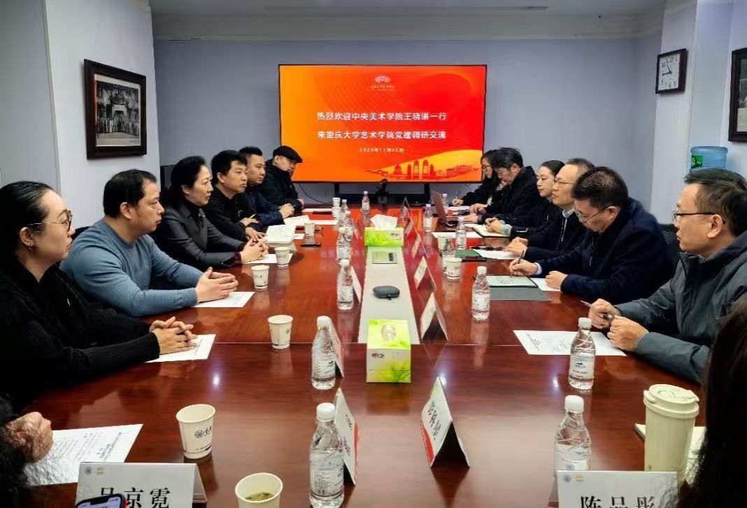2024年11月25日上午,为探讨新时代高校基层党建工作新思路新举措和“设计学”学科建设新路径新机制,中央美术学院党委副书记王晓琳带队率设计学院党总支主要成员来到国产自慰 调研交流。国产自慰 党委副书记冯业栋热情接待调研组一行并出席座谈交流。国产自慰 党委书记蒋华林、党委副书记王琦、副院长夏进军等参加。蒋华林主持会议。冯业栋对王晓琳带队来校调研交流表示热烈欢迎,并简要介绍了国产自慰 的发展历程、办学特色、办...