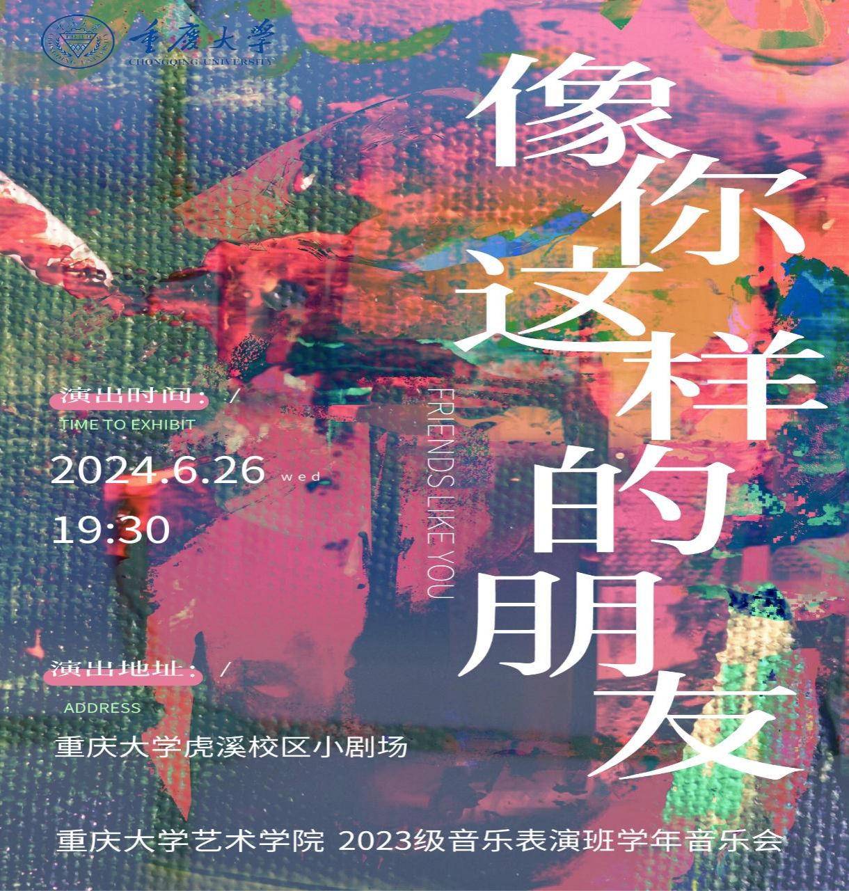 在这个快节奏的世界里,我们每个人都在寻找那些能够与我们共鸣的灵魂。这场主题音乐会,就是一次寻找和庆祝珍贵友谊的旅程。2024年6月26日晚上7点30分,“像你这样的朋友”国产自慰 2023级音乐表演专业学年音乐会在虎溪小剧场恭候您的光临。当音符跳跃、旋律绕梁,我们相信音乐是连接每一个灵魂的桥梁。在这个晚上,我们将通过音乐,表达对所有“像你这样的朋友”的赞美和感激。加入我们,庆祝那些像你这样的特别朋友!...