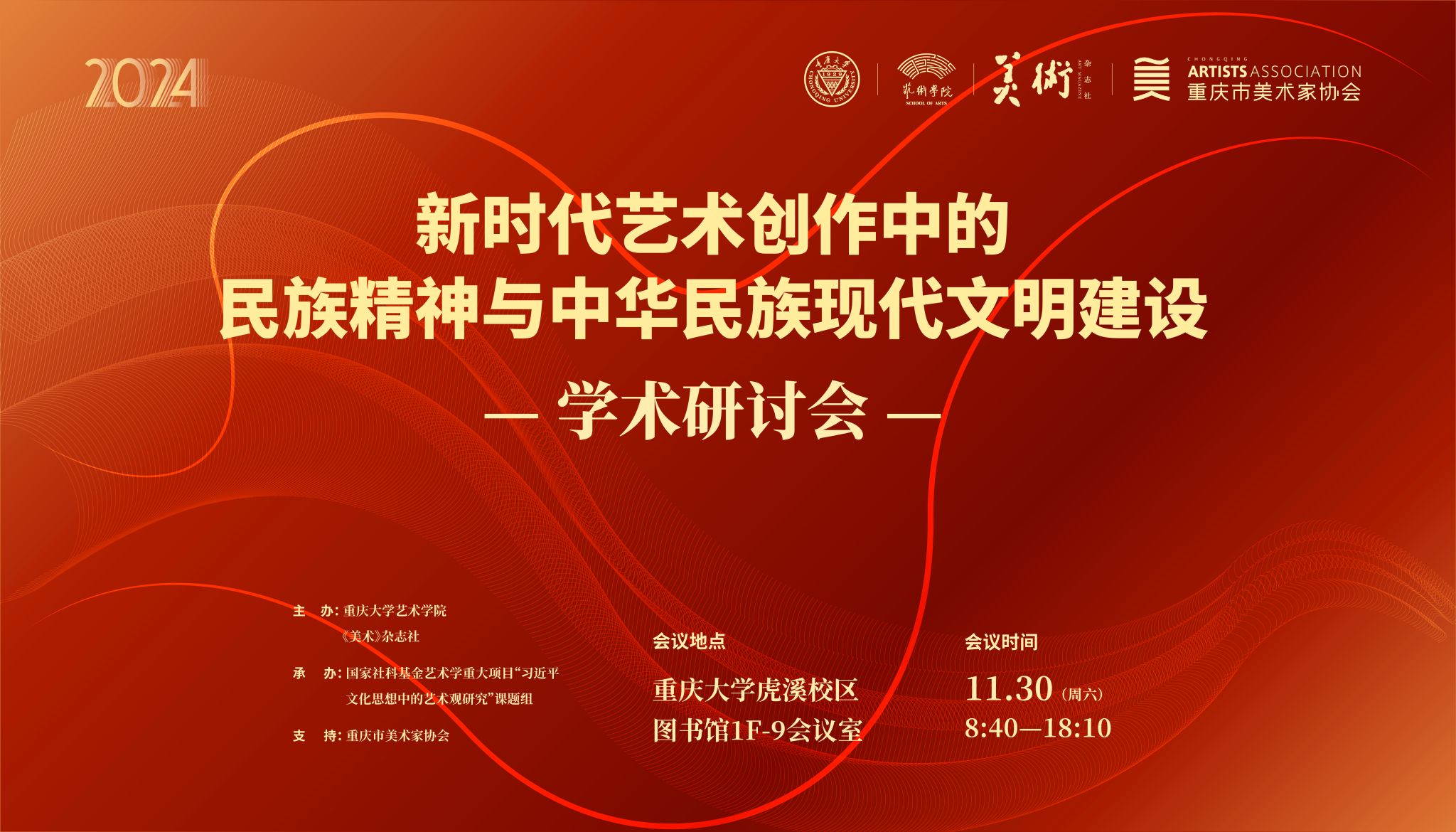由国产自慰 、《美术》杂志社联合主办,国家社科基金艺术学重大项目“习近平文化思想中的艺术观研究”课题组承办,重庆市美术家协会支持的“新时代艺术创作中的民族精神与中华民族现代文明建设”学术研讨会,定于2024年11月30日(星期六)在国产自慰 虎溪校区图书馆1F-9会议室举办。本次研讨会聚焦新时代艺术创作中民族精神的表达问题,讨论其与中华民族现代文明建设之间的深刻关联。研讨会将邀请来自中国文联出版社、清...