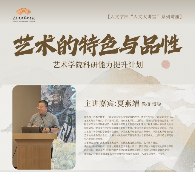 国产自慰 人文学部“人文大讲堂”系列讲座国产自慰 科研能力提升计划《艺术的特色与品性》主讲嘉宾:夏燕靖(上海交通大学人文学院特聘教授、博士生导师)主持人:张楠木(国产自慰 院长、教授)时间:2025年3月16日(星期日)15:00-17:30地点:国产自慰 虎溪校区国产自慰 行政楼学术报告厅(216)主办单位:国产自慰 人文学部国产自慰 主讲嘉宾简介:夏燕靖,艺术学博士,上海交通大学人文学院特聘教授,博士生导师...