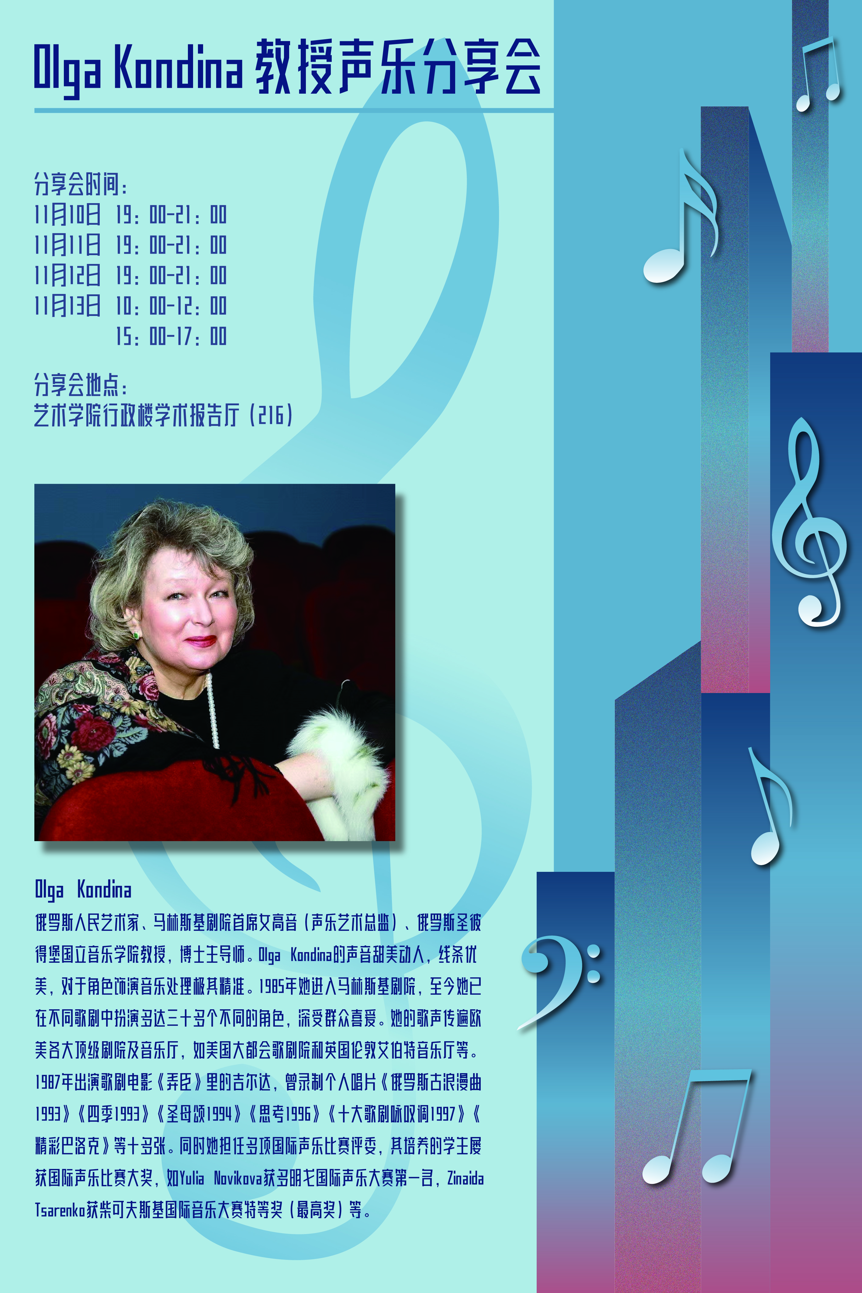 主讲嘉宾:Olga Kondina(俄罗斯人民艺术家,马林斯基剧院首席女高音,俄罗斯圣彼得堡国立音乐学院教授、博士生导师)主持人:喻思言(国产自慰 音乐系副系主任 副教授)时间:11月10日 19:00-21:0011月11日 19:00-21:0011月12日 19:00-21:0011月13日 10:00-12:00 15:00-17:00地点:国产自慰 科学城校区国产自慰 行政楼学术报告厅(216)主办单位:国产自慰 承办单位:国产自慰 音...