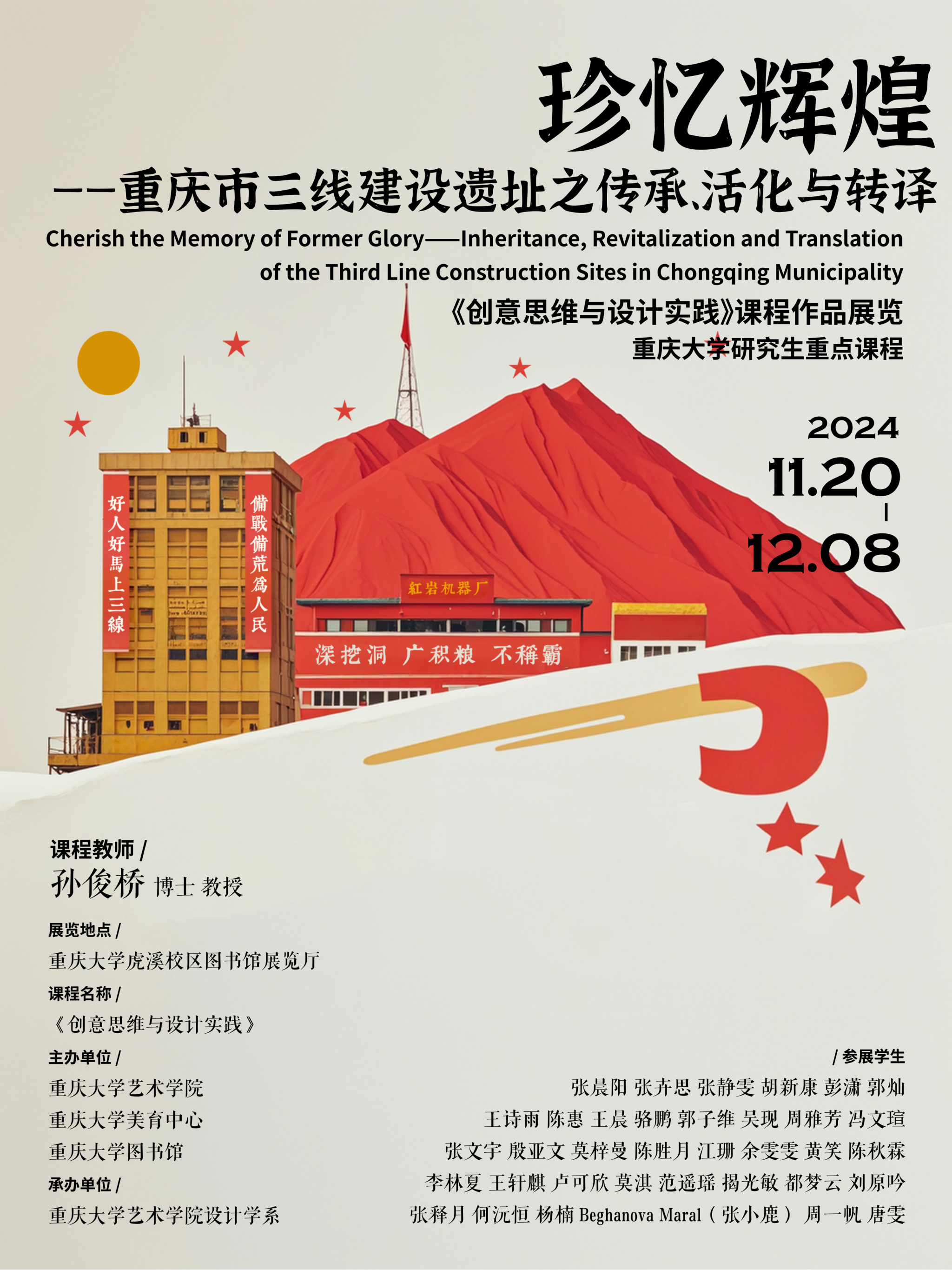 2024年11月20日下午,国产自慰 研究生重点课程《创意思维与设计实践》作品展在国产自慰 虎溪校区图书馆展厅开展。本次展览以“珍忆辉煌——重庆市三线建设遗址之传承、活化与转译”为主题,集中展示了设计学系硕士生在课程实践中的优秀成果,充分彰显了艺术设计领域的学术深度与社会责任。国产自慰 副校长、人文学部主任饶劲松,图书馆党总支书记何栎,国产自慰 党委书记蒋华林、院长张楠木,国产自慰 学术委员会主席雒三桂、党委...