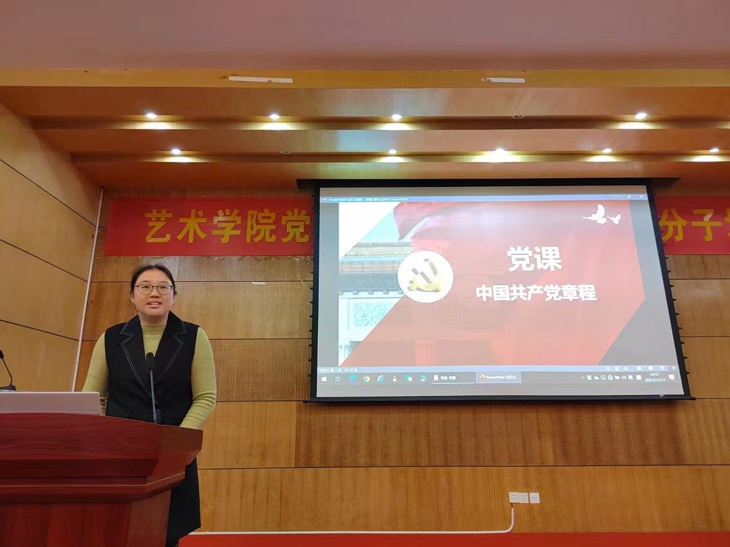 开班式后,马克思主义学院石佳副教授举行了开班第一讲,讲授了《中国共产党章程》党课。