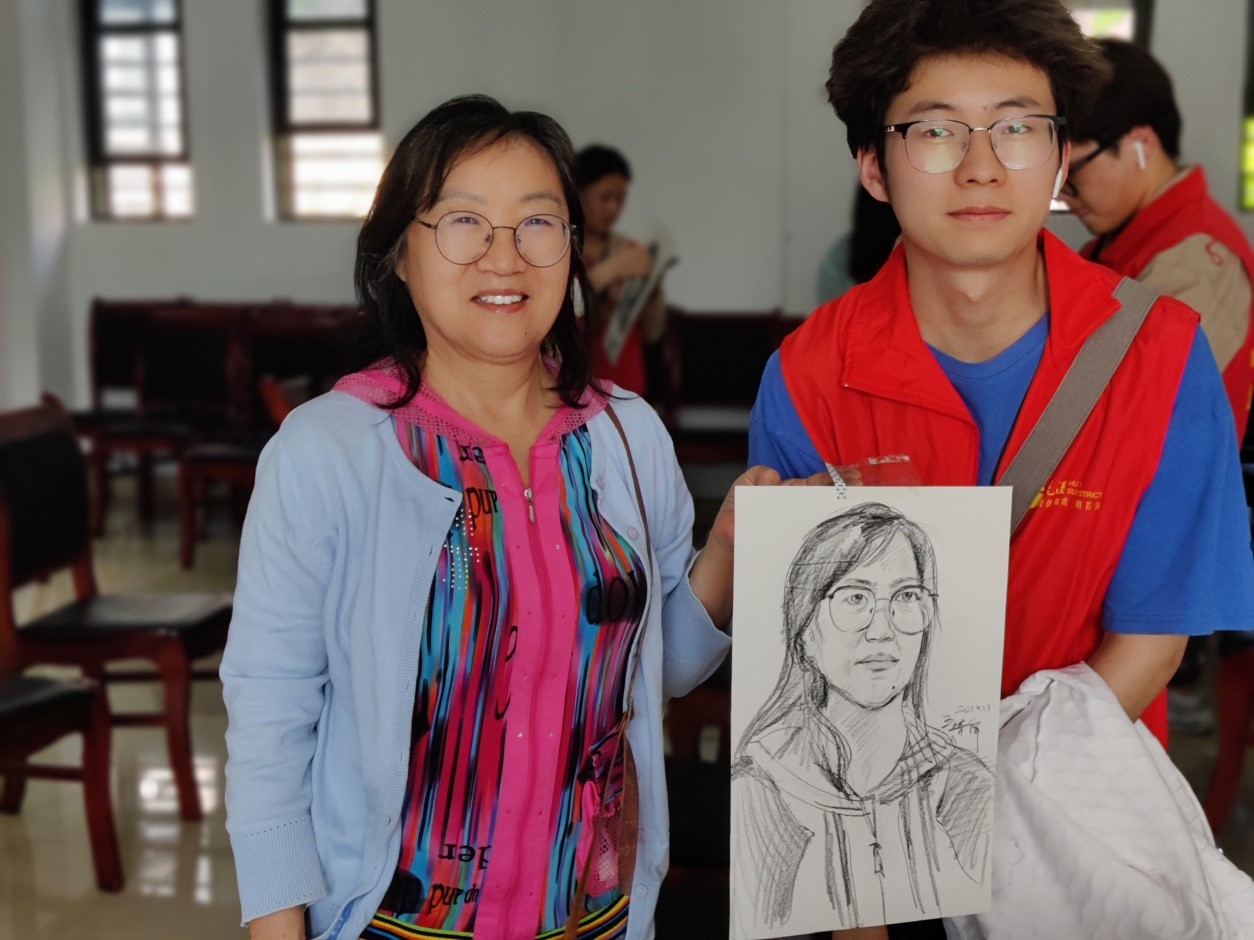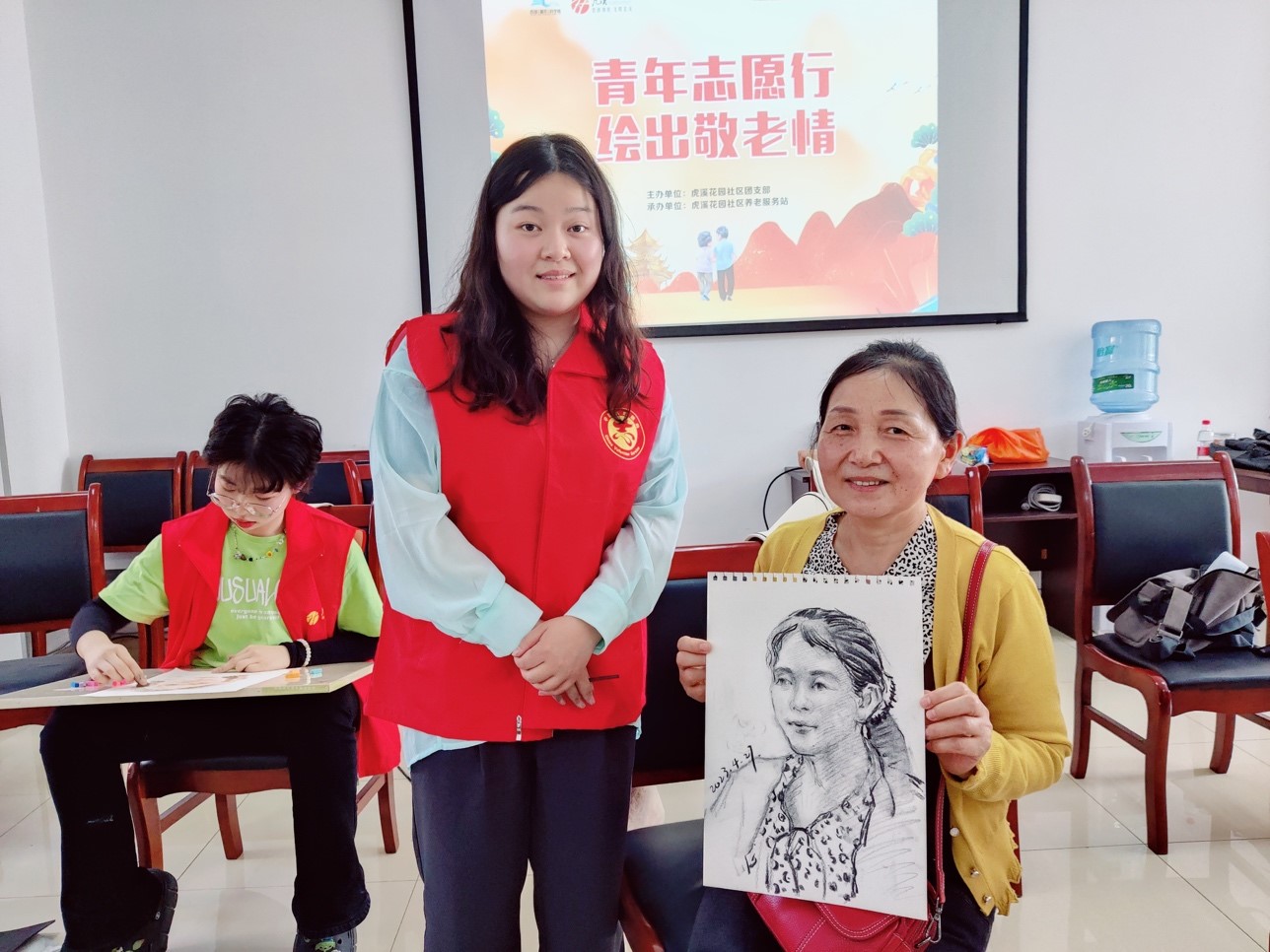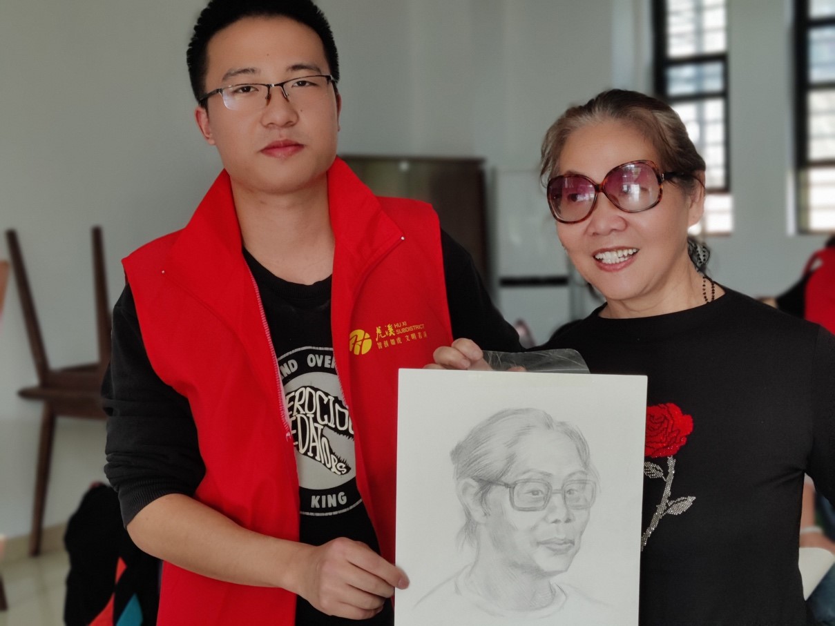 大学生志愿者们格外认真,充分发挥各自的专业实力开始构图、勾勒,时不时与老人们互动,描摹他们的一颦一笑,不到一会儿,一幅幅动人的肖像画就呈现在大家面前。这种双向奔赴的温暖无比美好!