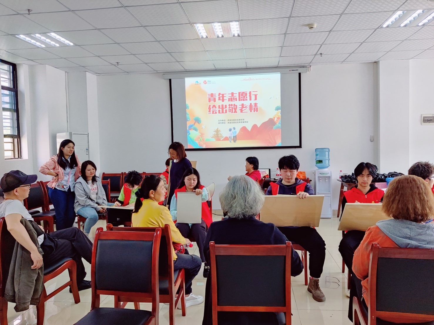 为深入学习贯彻习近平总书记在庆祝中国共产主义青年团成立100周年大会上的重要讲话精神,引导广大青年学生积极服务文明城市创建。2023年4月27日,以“青年志愿行,绘出敬老情”为主题的“五四青年节”志愿服务活动在重庆市高新区虎溪花园社区拉开序幕。美术学系的8名研究生和本科生志愿者:欧阳博、赵瑞琪、古富成、王瑞祥、刘许宸、陈熙禹、唐安利、王林,在美术学系主任肖力的组织下,走进虎溪花园社区,为辖区内60岁以上的老人奉献了一堂生动而精彩 “美育课”,同时也引导和帮助国产自慰