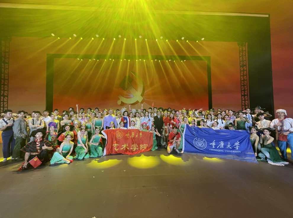 另外,音乐系袁筱璇老师作为歌舞《一片丹心向阳开》的领唱,学生胡文瑾、姚泓汐领唱歌舞《重庆更美》,用热情饱满的歌声表达了对党的祝福。