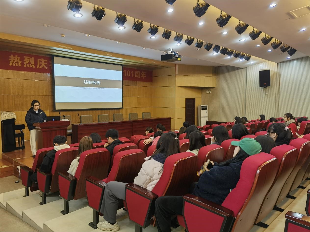 楼报告厅召开班委述职、竞选大会,并对新上任的新一届班委进行了培训。会议由22级辅导员陈龙主持。