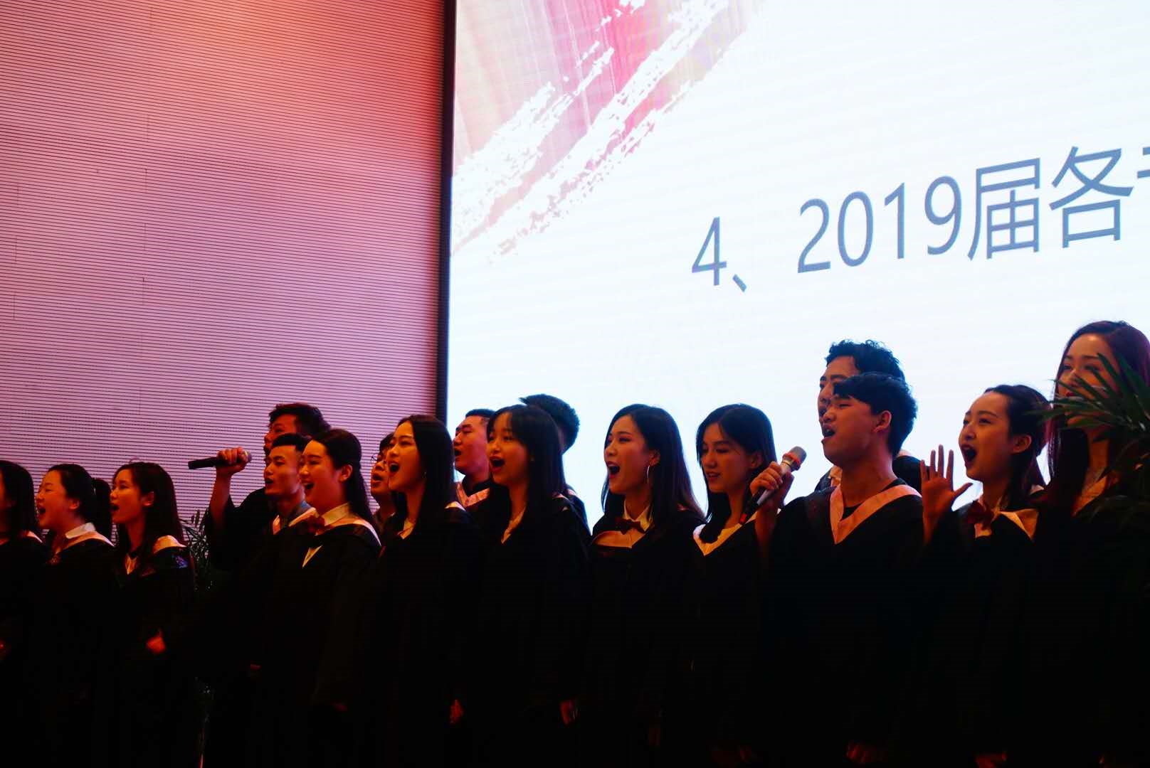 其次,典礼各毕业班风采展示。展示由舞蹈系本科毕业生欢快的舞蹈拉开帷幕。紧接着,音乐系全体毕业生演唱毕业歌曲,最后,其他几个专业各自以视频的方式共同回顾了从大一到大四一起走过的青春历程。