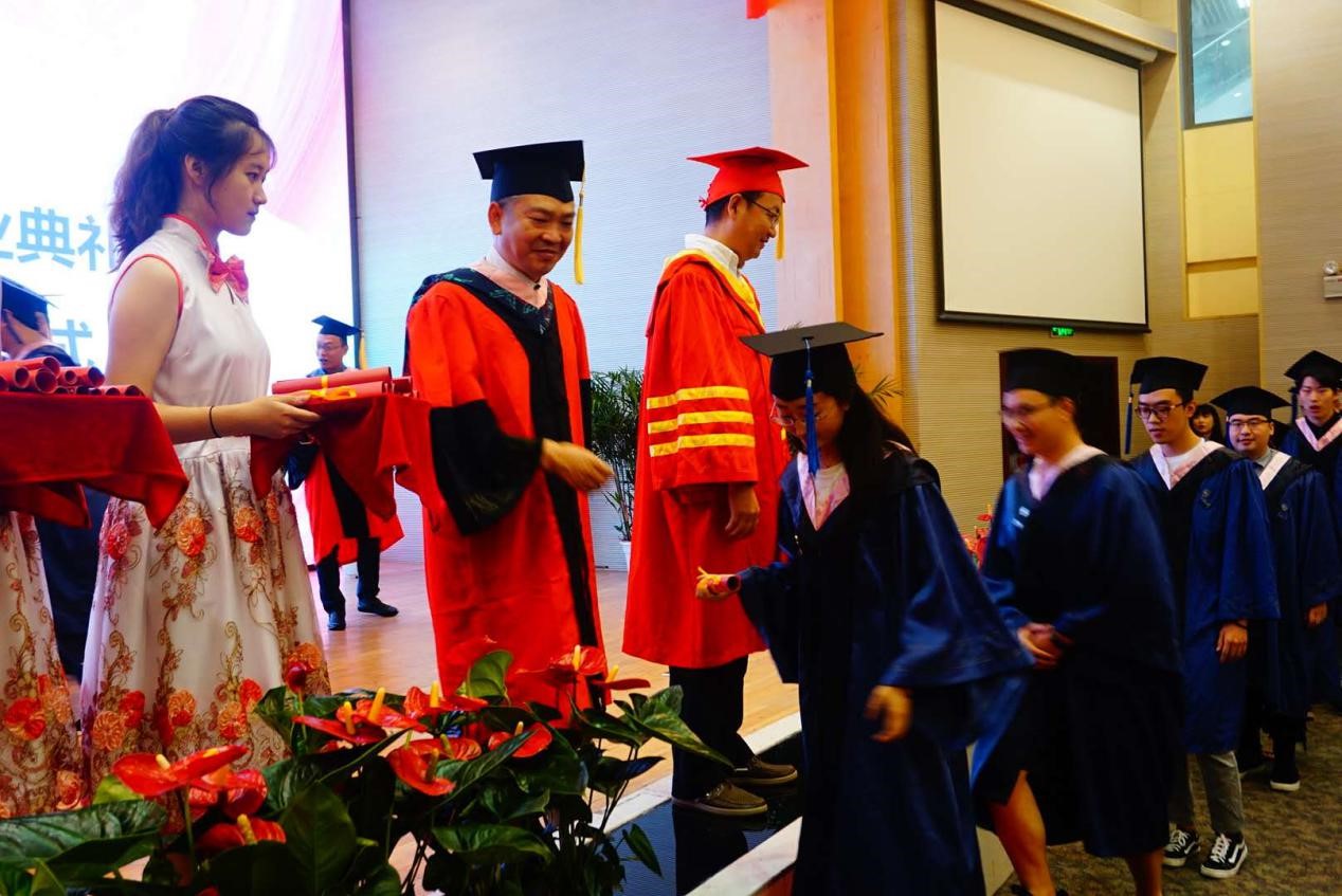 院长雒三桂寄语毕业生中提到,“穷则独善其身,达则兼济天下”他分享了4个财富:自信、见识、圈子和学习的能力。他总结,要想清楚你想过什么样的生活,人生将怎么过,去坚持不懈地追求理想等人生感悟,希望毕业生们始终做一个好人,敢于去尝试和体验,扩展生命的宽度和深度;更继承重大“研究学术,造就人才,佑启乡邦,振导社会”的家国情怀,关怀未来而非眼前,关心精神而非物质,关注他人而非自我,始终坚定自己的原则和底线。典礼最后,国产自慰