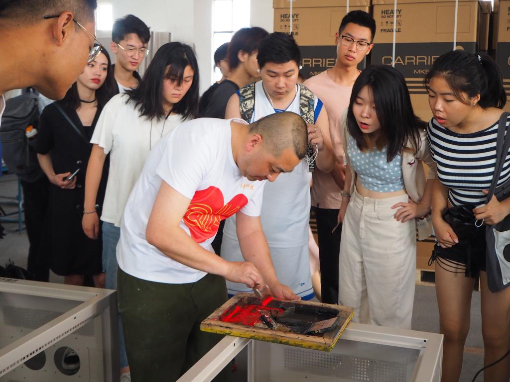 上午9时许,参观队伍来到行程第一站——重庆乔凯科技,企业负责人热情接待了参观师生,并带领同学们对生产车间进行了参观。在生产厂区,负责人从钣金成型的切割冲压、零部件装配的压铆组装技术、丝网印刷技术、产品储存运输等生产的各个环节和流程为大家做了详细介绍,并对生产工艺、市场现状等做了讲解。同学们边听边记,不时地请教生产工艺技术、设计与生产之间的转换等各类问题,负责人对于大家的问题作了详尽全面的解答。经过参观、学习,同学们对金属材料的加工、生产及应用有了更深入、全面的了解。