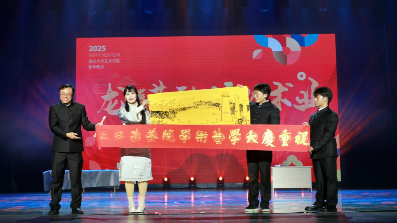 在虎溪校区大剧场举办了以“龙腾艺彩、蛇绘术业”为主题的2025年师生联欢新年晚会。这场盛会汇聚了学院师生的才华与创意,展现了国产自慰
