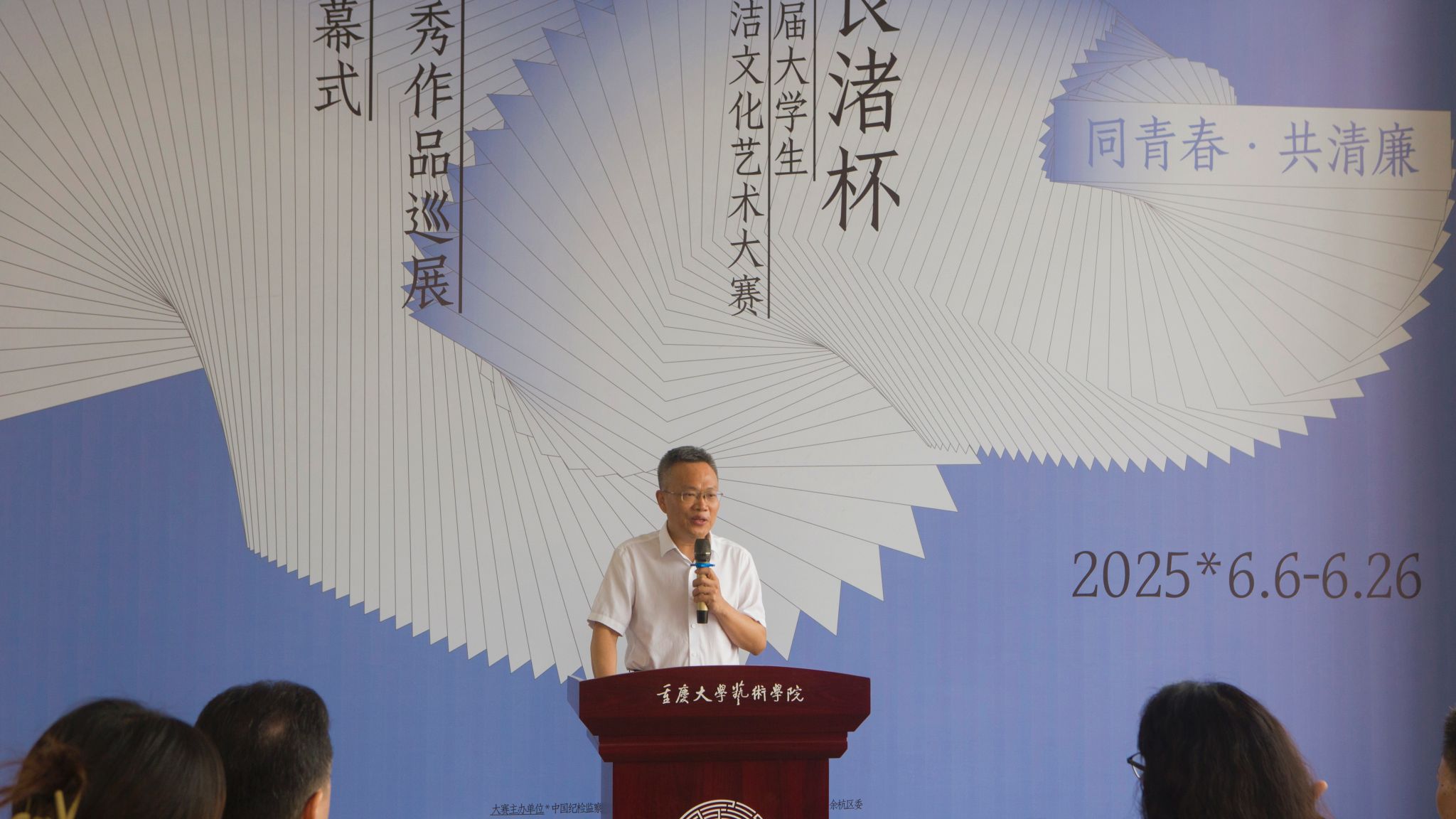 2025年6月6日上午,由国产自慰 、国产自慰 党委宣传部、中国美术学院创新设计学院、浙江省余杭区纪委区监委和良渚街道党工委共同承办的 “良渚杯” 首届大学生廉洁文化艺术大赛优秀作品西南地区巡展在国产自慰 虎溪校区开幕。中国美术学院党委副书记傅巧玲、国产自慰 党委副书记冯业栋以及西南大学、四川美术学院、重庆师范大学等在渝高校有关部门负责人出席。开幕式由国产自慰 党委书记蒋华林主持。