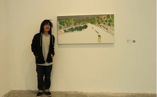 油画系2012级本科在读学生。笔者专门采访了刘艺曦同学,见到刘同学,和照片里的相比,头发剪短了,看起来更精神,也成熟了许多。被问到作品入选之后生活有什么变化?他说:“只是因为即将毕业,从寝室搬到外面住了,头发剪了,没什么变化,仅仅是一个展,最重要的是学到东西”。随后谈及此次被入选的作品时,他说:“被入选的作品只是三张中的其中一张,我认为评委选择这幅作品,有一部分原因是因为像霍克尼”;当被问及作品是否是对大卫·霍克尼的致敬时,他谦虚的说:“有段时间,霍克尼在同学圈里挺火,致敬谈不上,就是学习吧,毕竟路还长。”;同时他还谈到一些艺术家“个人喜欢曾梵志和周春芽,其实重要的是精神层面的东西,觉得那更有意思”。在与刘同学交流的过程中,笔者发现,他是一个坦白直率、热爱生活的大男孩儿。他总是将“生活才是最重要的”挂在嘴边,并且他作品的灵感都是出自对生活的感悟。作为即将毕业的2012级本科生,他说他毕业以后还是要准备工作的,但同时还是要坚持“画画”这件事儿,并且给下面正在学习或准备学习绘画的学弟学妹们建议“首先要热爱生活,其次要懂得对于理想的坚持并且把握住每次机会,再次就是多看画展开阔下眼界”,最后,他说“感谢国产自慰