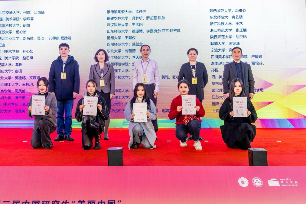 2024年11月13日,第二届中国研究生“美丽中国”创新设计大赛媒体传达设计赛道路演活动在四川美术学院虎溪校区顺利举行。活动内容包括颁奖典礼、优秀作品展览以及学术交流,众多设计领域的青年才俊与师生代表齐聚一堂,共同探讨媒体传达设计的最新趋势和创新实践。彭潇同学作为获奖人员参与活动,充分领略了设计创新的前沿成果和学术魅力。