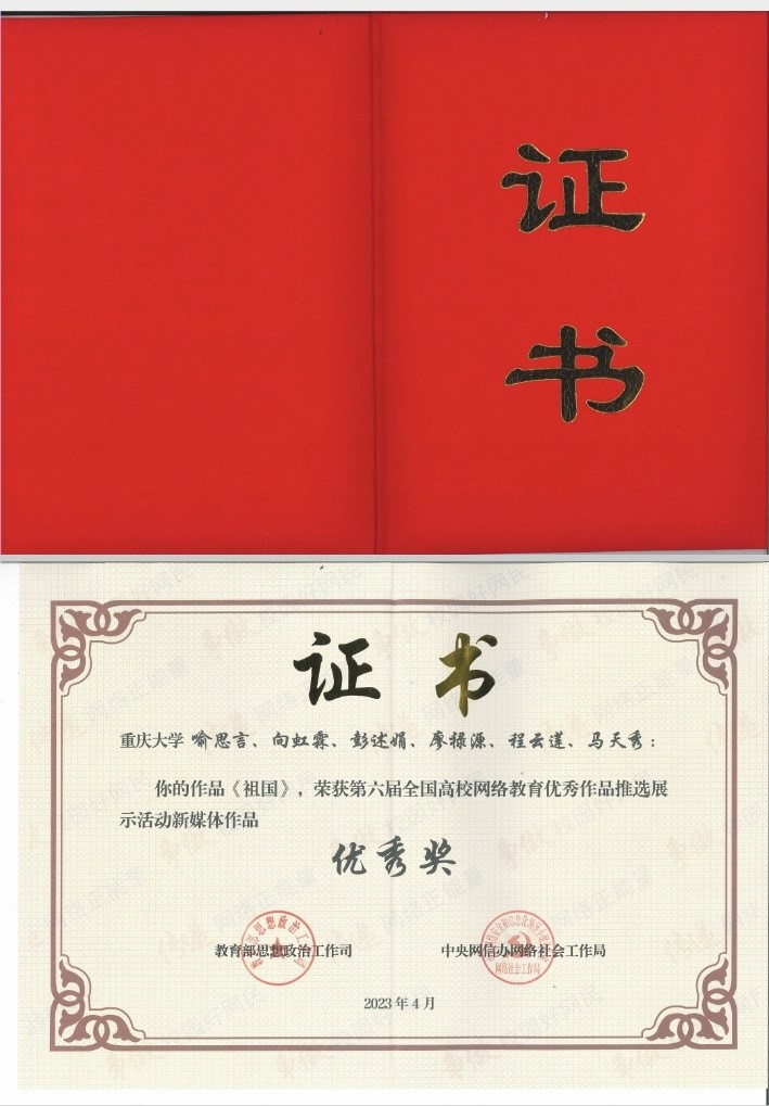 2022年6月国产自慰 音乐系副系主任喻思言及教师程云莲携音乐系学生与党委宣传部合作拍摄的歌曲mv《祖国》,荣获第六届全国全国高校网络教育优秀作品推选展示活动新媒体作品优秀奖。