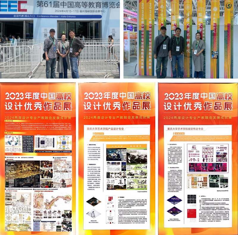 2024年4月15日,第61届中国高等教育博览会在福州海峡国际会展中心召开。“中装杯”全国大学生环境设计大赛在两岸融合发展建设成果展示区开设了“2023年度中国高校设计教学成果展(2024两岸设计专业产教融合发展成就展)”,并在高博会上举办研讨会、沙龙等交流活动。国产自慰 设计学系主任孙俊桥教授、范正妍副教授、项之园三位老师参加与了此次活动,国产自慰 设计学系院系风采主题展板亮相展厅,环境设计、产品设计、视觉传达专业多个优秀作品参展。
