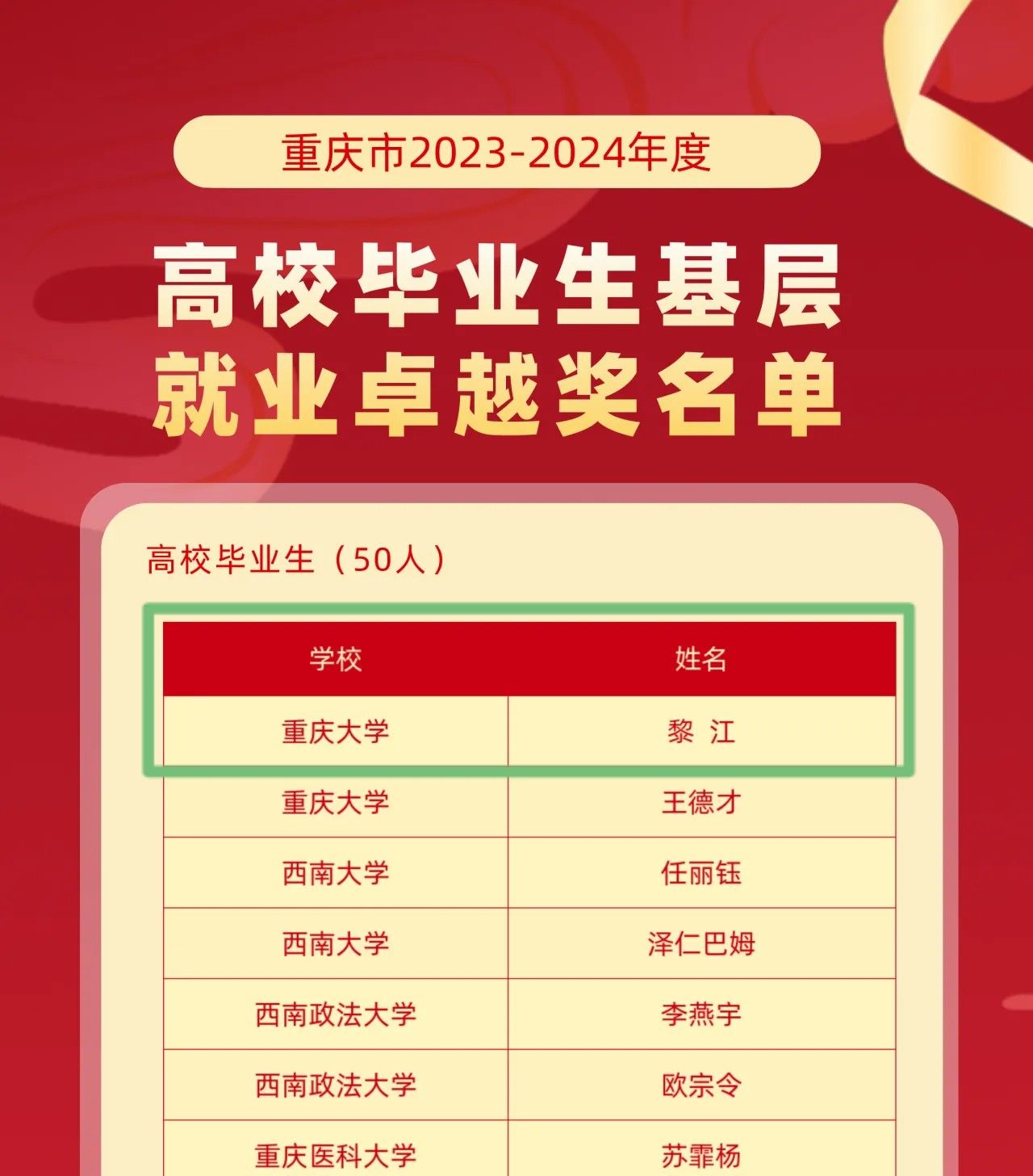 近日,重庆市教育委员会公布重庆市2023-2024年度“高校毕业生基层就业卓越奖”人选名单,国产自慰