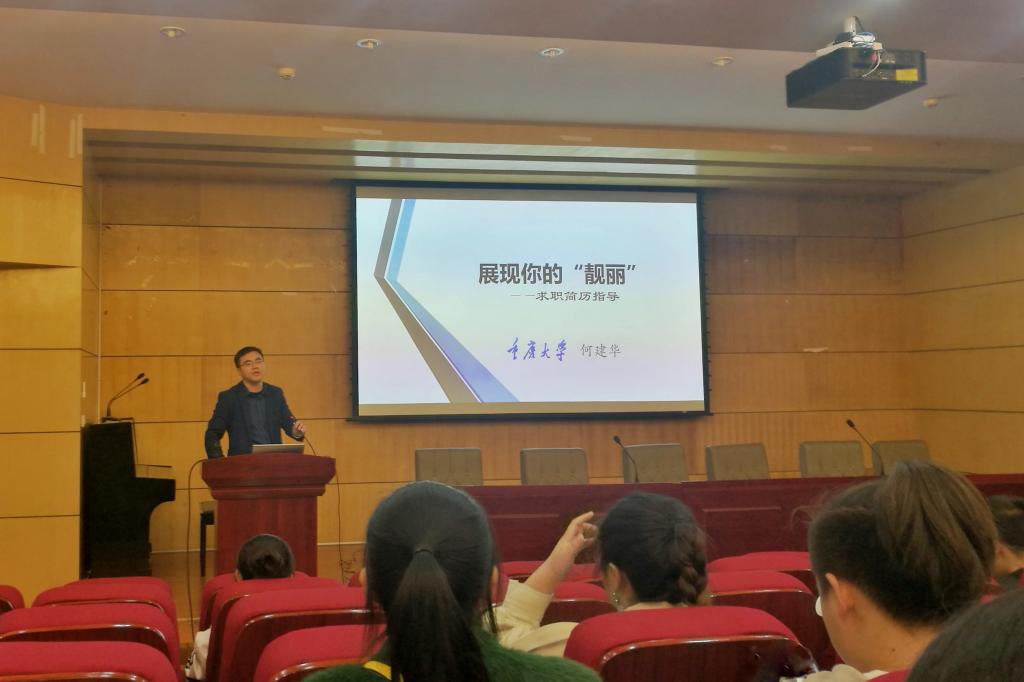 邀请了从事学生就业和职业生涯规划指导老师何建华博士,为2019届研究生及本科毕业生开展了一次求职技能讲座。
