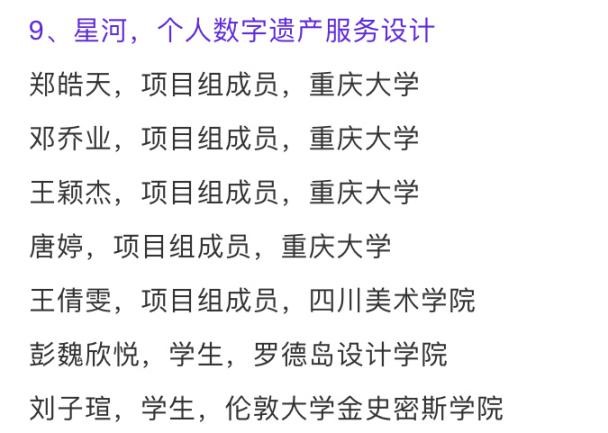 本次大赛共设有26个奖项,其中涵盖了9个单项奖和1个梦想大奖。提名本次TTF Dream 大赛的两支研究生团队分别是“望穿事务所”项目组和“人类研究所”项目组。“望穿事务所”的设计作品“星河—个人数字遗产服务系统设计”由国产自慰