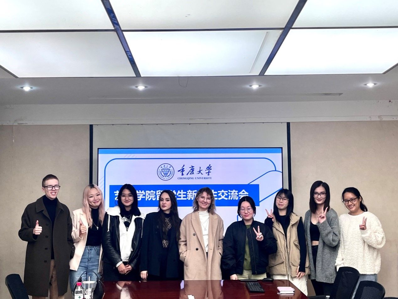 在新老生交流会上,彭小希介绍了学院的历史、特色及学科专业设置,使国际学生们对国产自慰