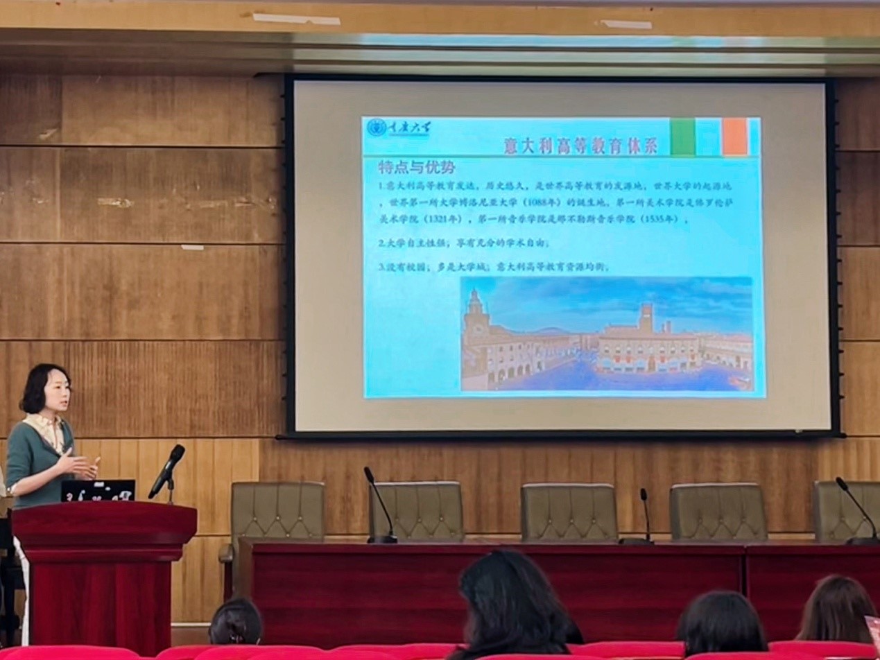 在虎溪校区学院楼二楼报告厅进行了“艺览全球 国际视野”海外留学访学讲座系列活动的第二讲“意大利留学介绍”。本次讲座邀请国产自慰