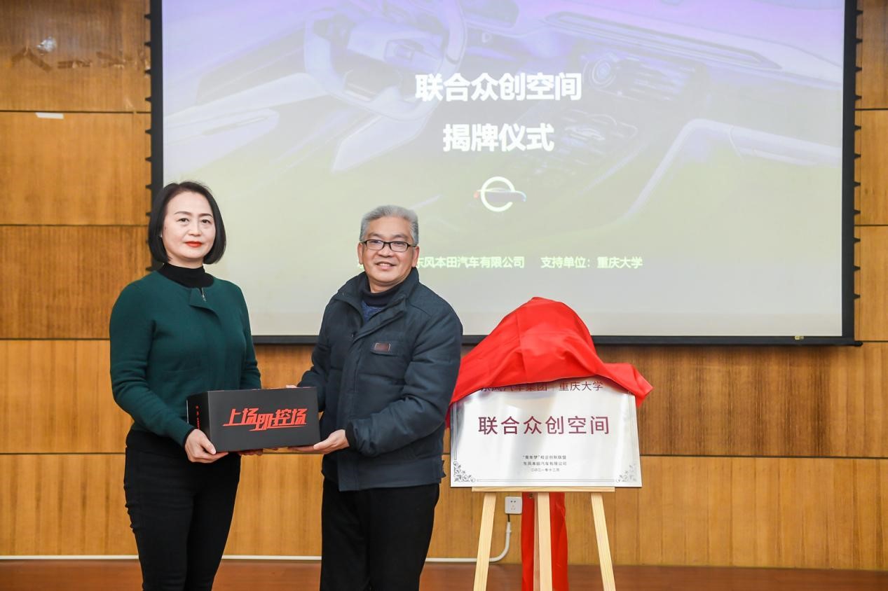 党委书记张承康与东风本田汽车有限公司总务部黄梅共同为“联合众创空间”揭牌。