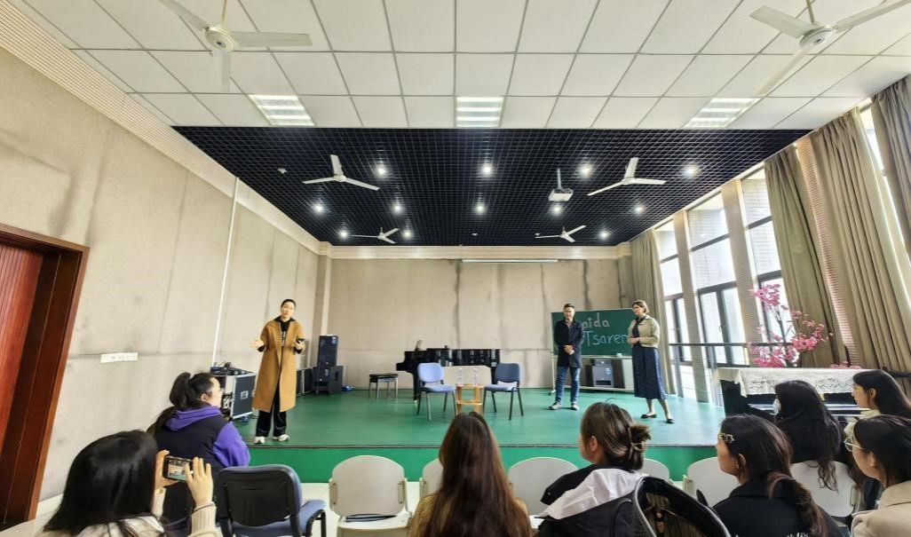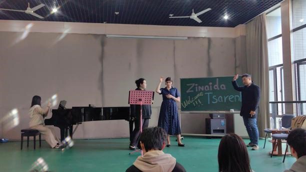 2023年11月20日,俄罗斯马林斯基剧院独唱演员、第十七届柴可夫斯基音乐大赛最高奖获得者齐娜依达·察连科(Zinaida Tsarenko)来到国产自慰 ,与国产自慰 音乐系师生开展学术交流活动。活动由音乐系主任肖玲主持,副主任喻思言担任翻译,音乐系全体师生参与。