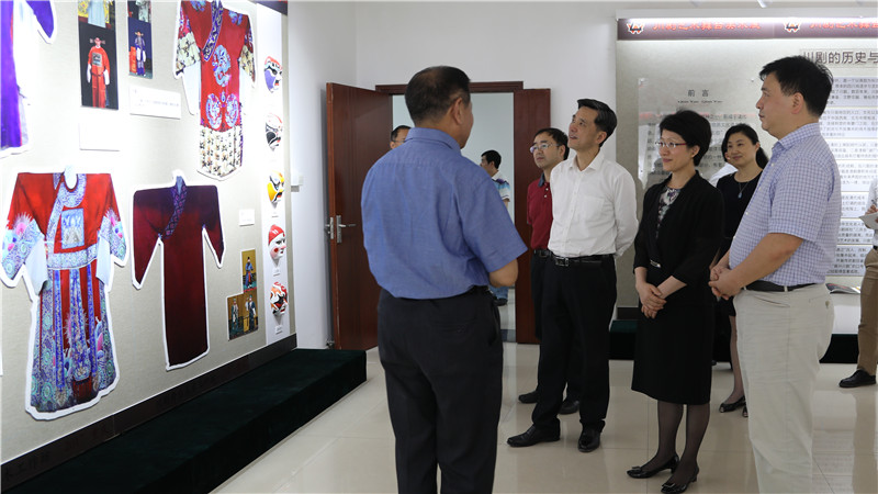 教育部川剧文化传承与保护基地,谭家玲观看了由学生自主绘制的川剧脸谱、舞美设计、演出服装等艺术作品,谭家玲对国产自慰