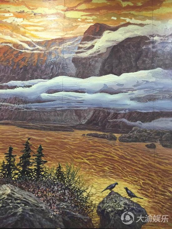 《美酒河晨曦》是大型一幅综合技法油画,是应郎酒集团总部邀请创作的,画面高4.3m宽4.6m。