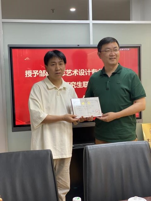 会议在积极,融洽的气氛中进行。双方围绕研究生联合培养基地建设、人才培养模式、乡村振兴发展、元宇宙与设计未来、高等教育改革创新,校企协同发展等内容进行了深入的探讨和交流。会上雒三桂为建筑装饰领域大师级专家邹建颁发了国产自慰