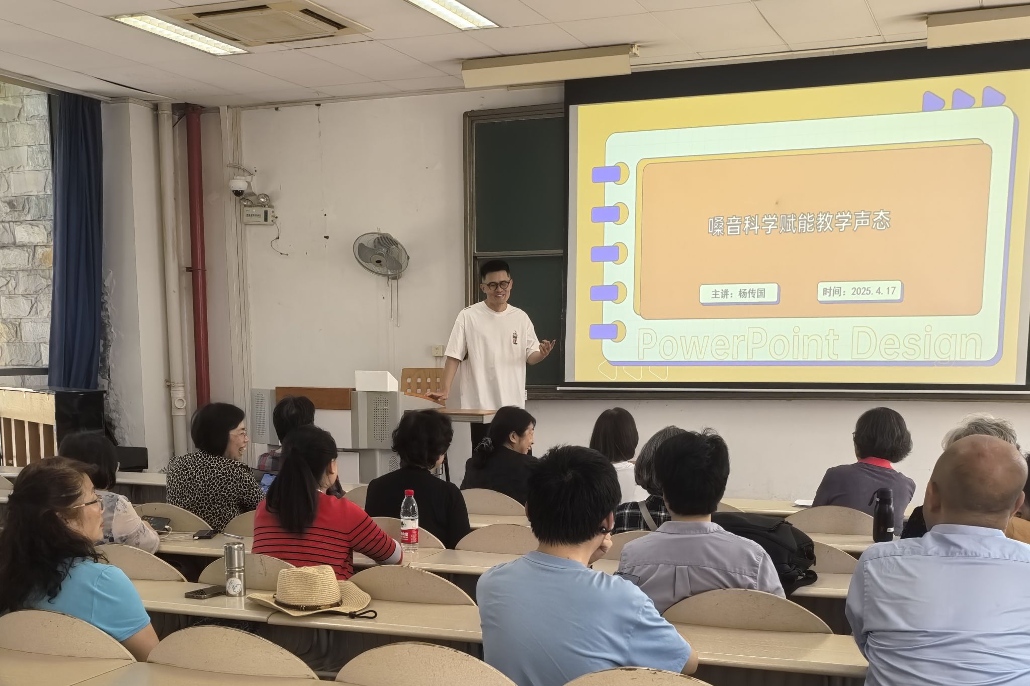2025年4月17日下午2:30,由国产自慰 工会主办、国产自慰 分工会承办的"‘玫瑰书香’阅读活动——嗓音科学赋能教学声态"主题讲座,在虎溪校区综合楼DZ122教室举行。国产自慰 教师杨传国以专业嗓音训练为核心,为现场教职员工带来一堂兼具科学性与实用性的声音艺术课。国产自慰 分工会主席王朕思、副主席李杰,校内有关分工会50多位教职工到现场参加。
