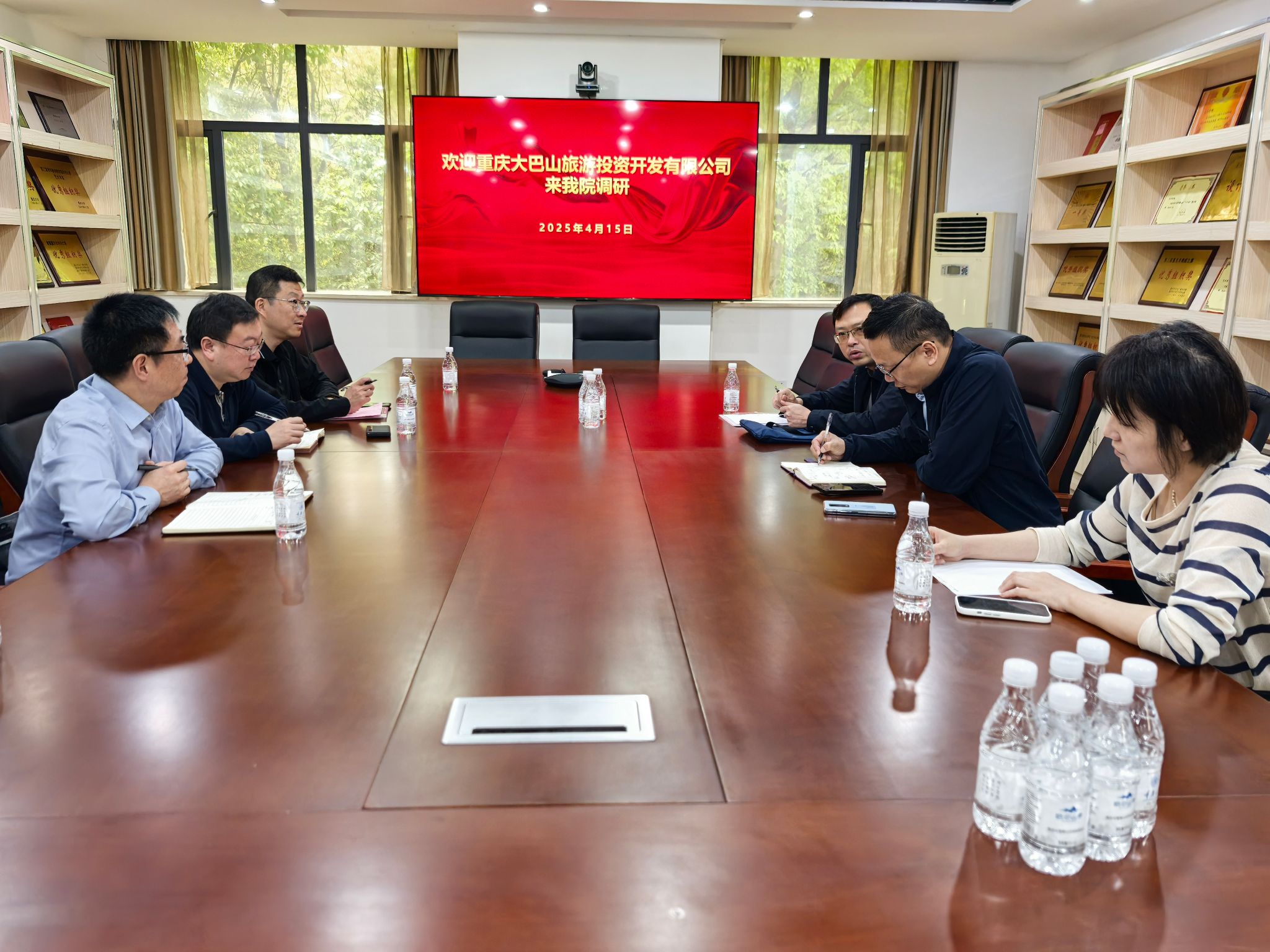 2025 年 4 月 15 日上午 ,重庆大巴山旅游投资开发有限公司总经理王安明一行来国产自慰 调研,调研会在学院办公楼第一会议室举行。重庆大巴山旅游投资开发有限公司董事长王安明、副总经理张静,青岛托芘雅公司副总经理隋立川,国产自慰 副院长夏进军、美术学系副主任王汉、设计学系副主任熊喜秋参加了调研座谈。