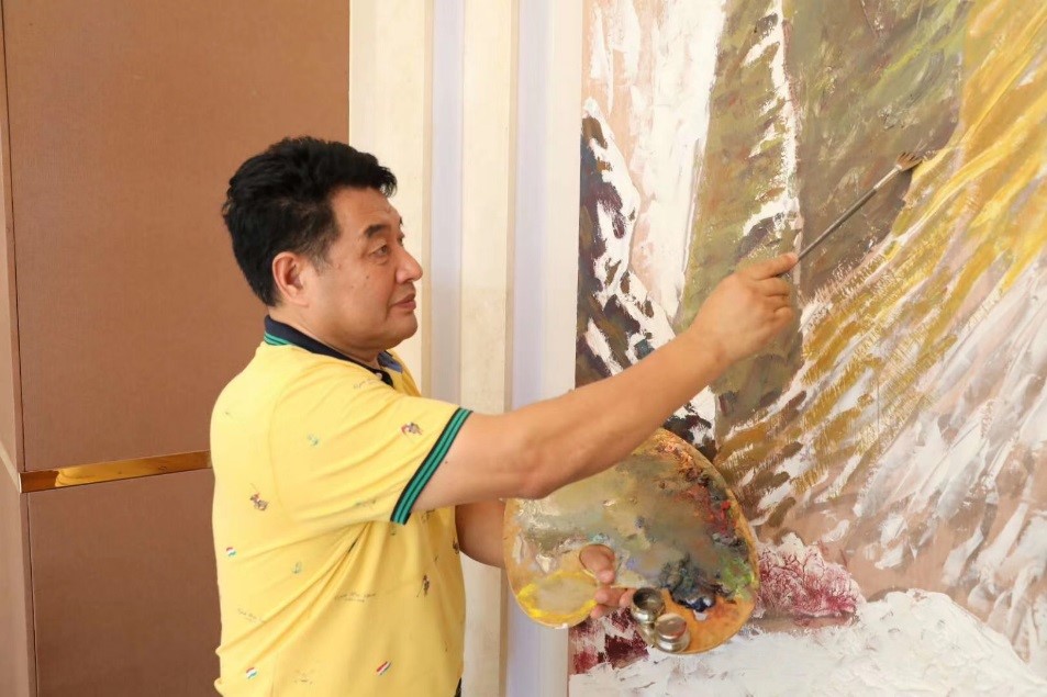 许世虎教授也带领着自己的研究生团队参与其中,让学生们通过这一次难能可贵的机会进行创作学习,并从中获得对艺术创作的启发。师生同心将祖国大好河山呈现在众人眼前。