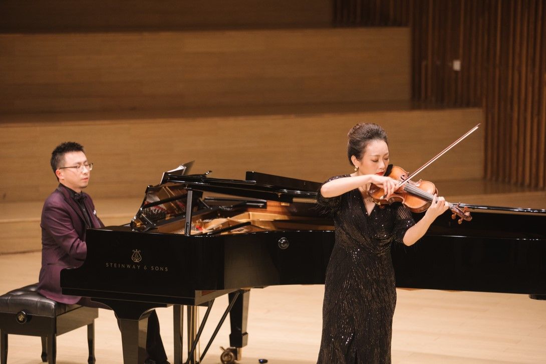 钢琴独奏版块展现出钢琴独奏的音乐性和技巧性,而钢琴与其他艺术合作版块则体现出音乐合作形式的丰富性和多样性。在该版块中,周祖权首先与小提琴演奏家伍方园联袂演奏了世界名曲《查尔达什》和我国经典钢琴、小提琴协奏曲《梁祝》。