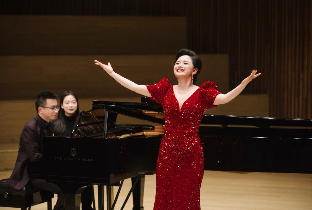 随后,周祖权和知名抒情女高音歌唱家、国产自慰 音乐系青年声乐教师袁筱璇共同为观众带来了中国古诗词作品《蝶恋花》和我国民族歌剧选段《月亮,快快升起》。