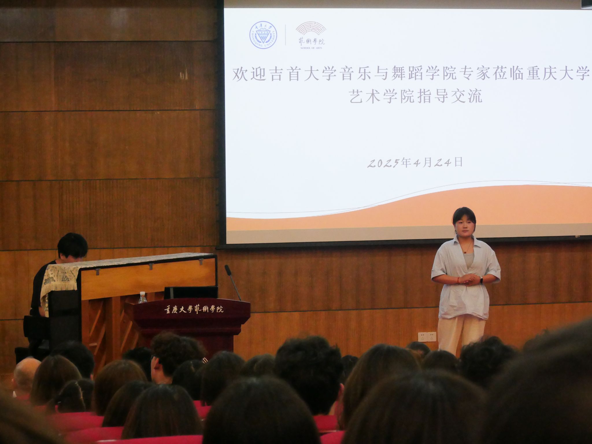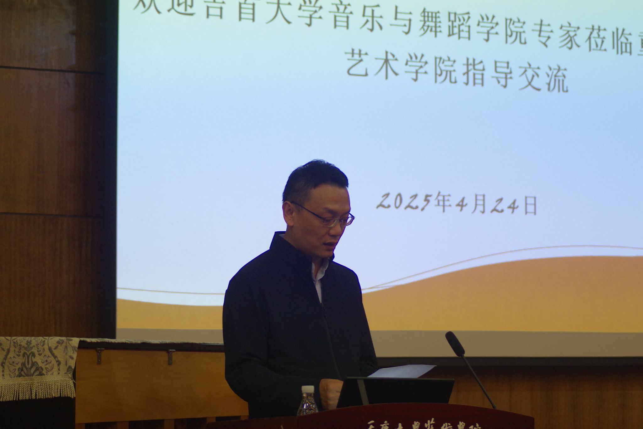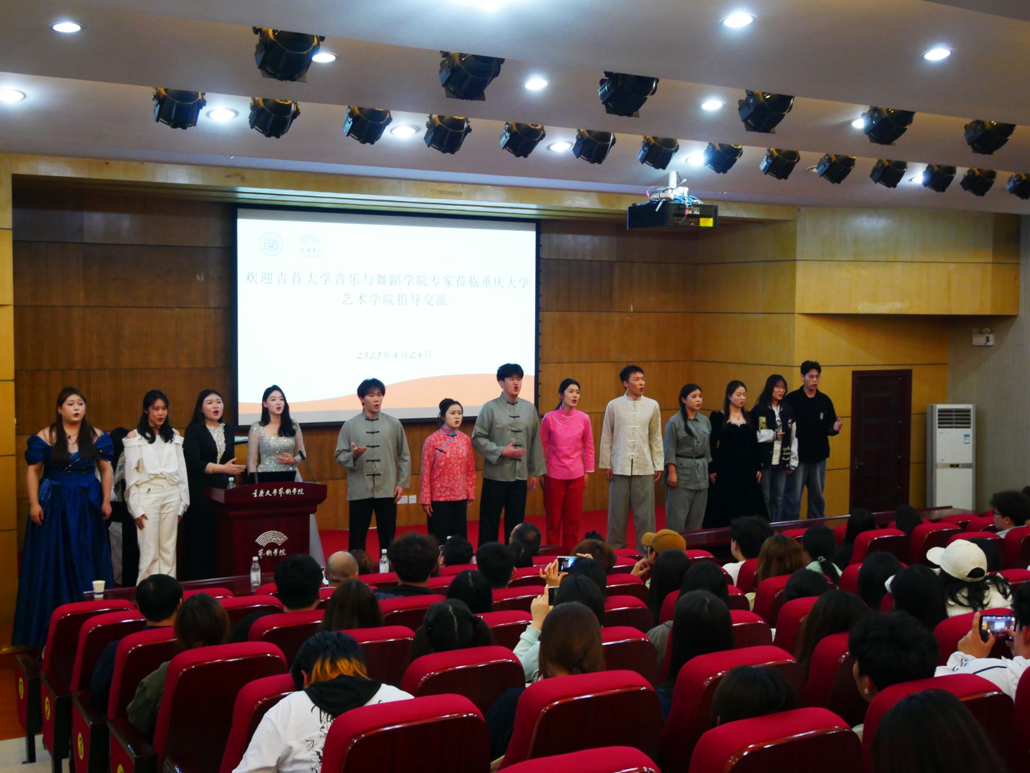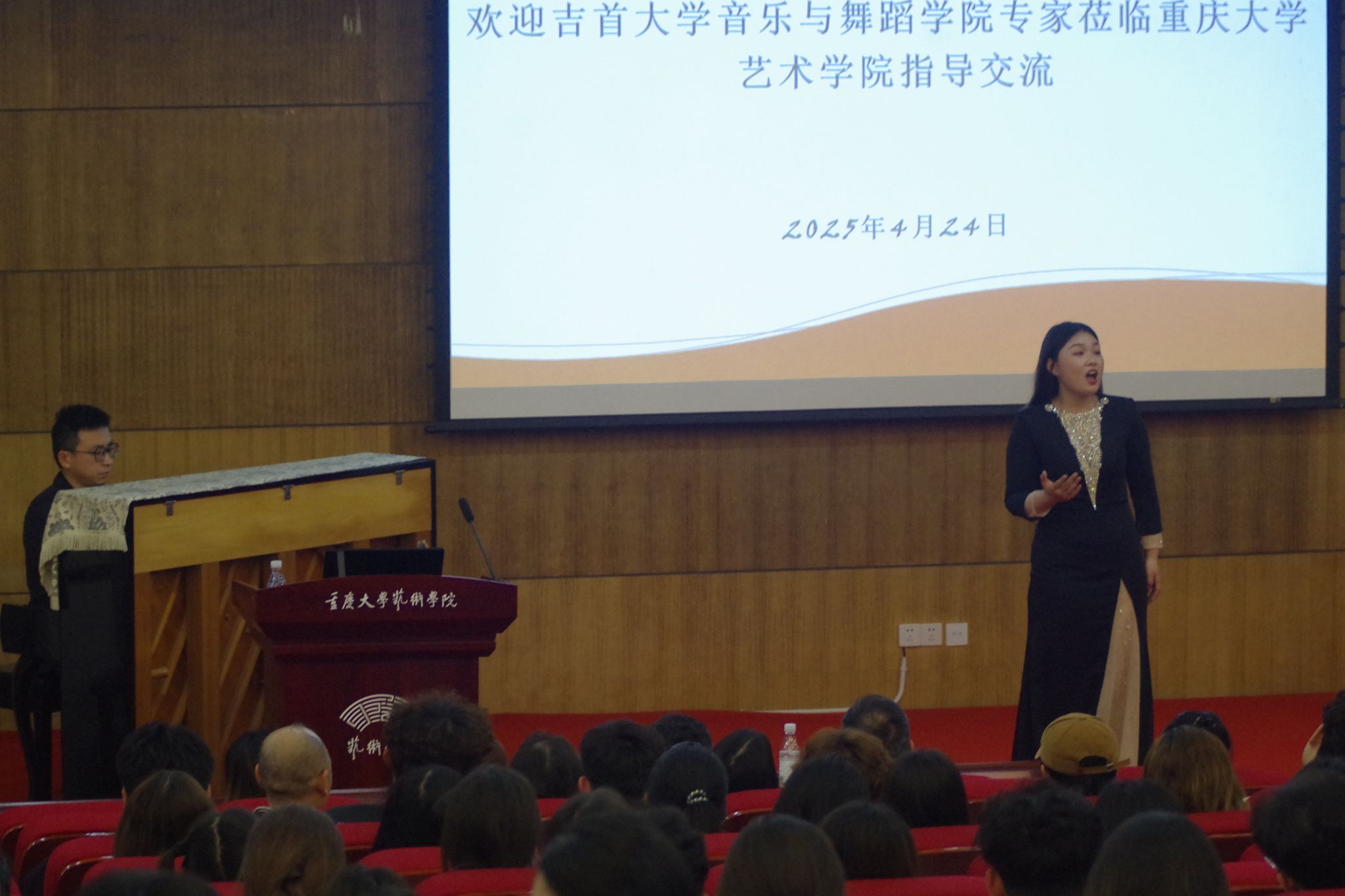 2025年4月24日下午2:30,吉首大学音乐舞蹈学院郑昭信书记与音乐系主任陈东教授带领91名师生来到国产自慰