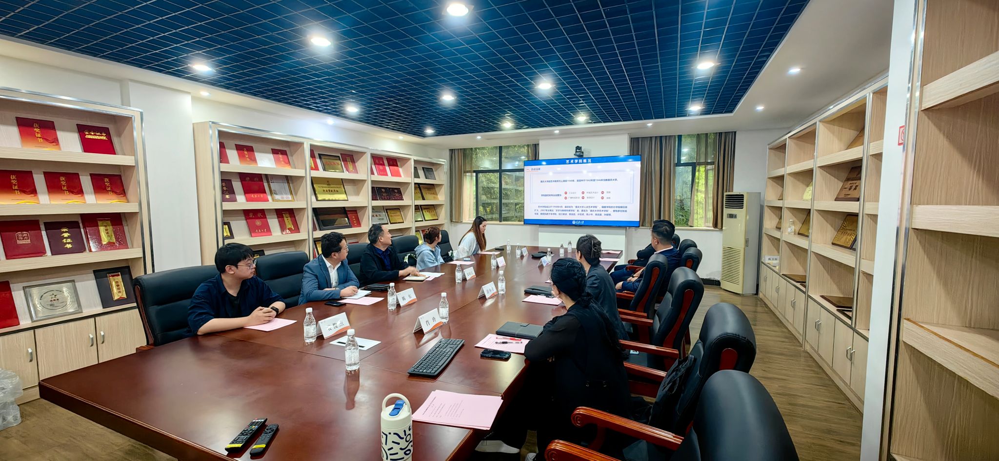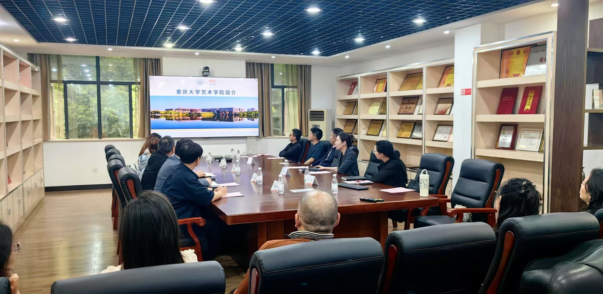 展演活动后,在学院副院长彭小希的主持下,双方教师在学院办公楼302会议室展开深度座谈交流。彭小希就学院办学情况做了详尽介绍,并就学生社会实践、校企合作、毕业生就业情况等相关调研主题进行了深入交流。