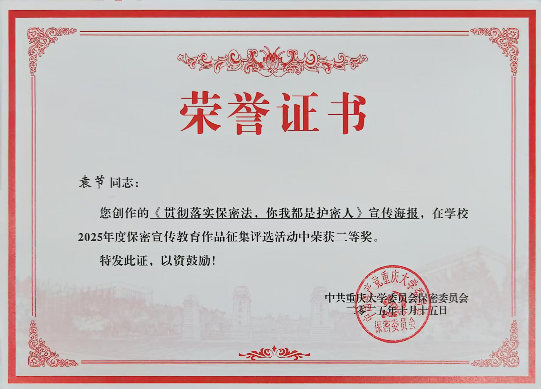 学子凭借新颖的创作思路与出色的作品呈现,在众多参赛作品中脱颖而出,斩获多项荣誉,共10名同学9件作品获奖,其中一等奖1项、二等奖2项、三等奖4项、优秀奖2项,展现了学院在保密宣传教育工作中的突出成效。