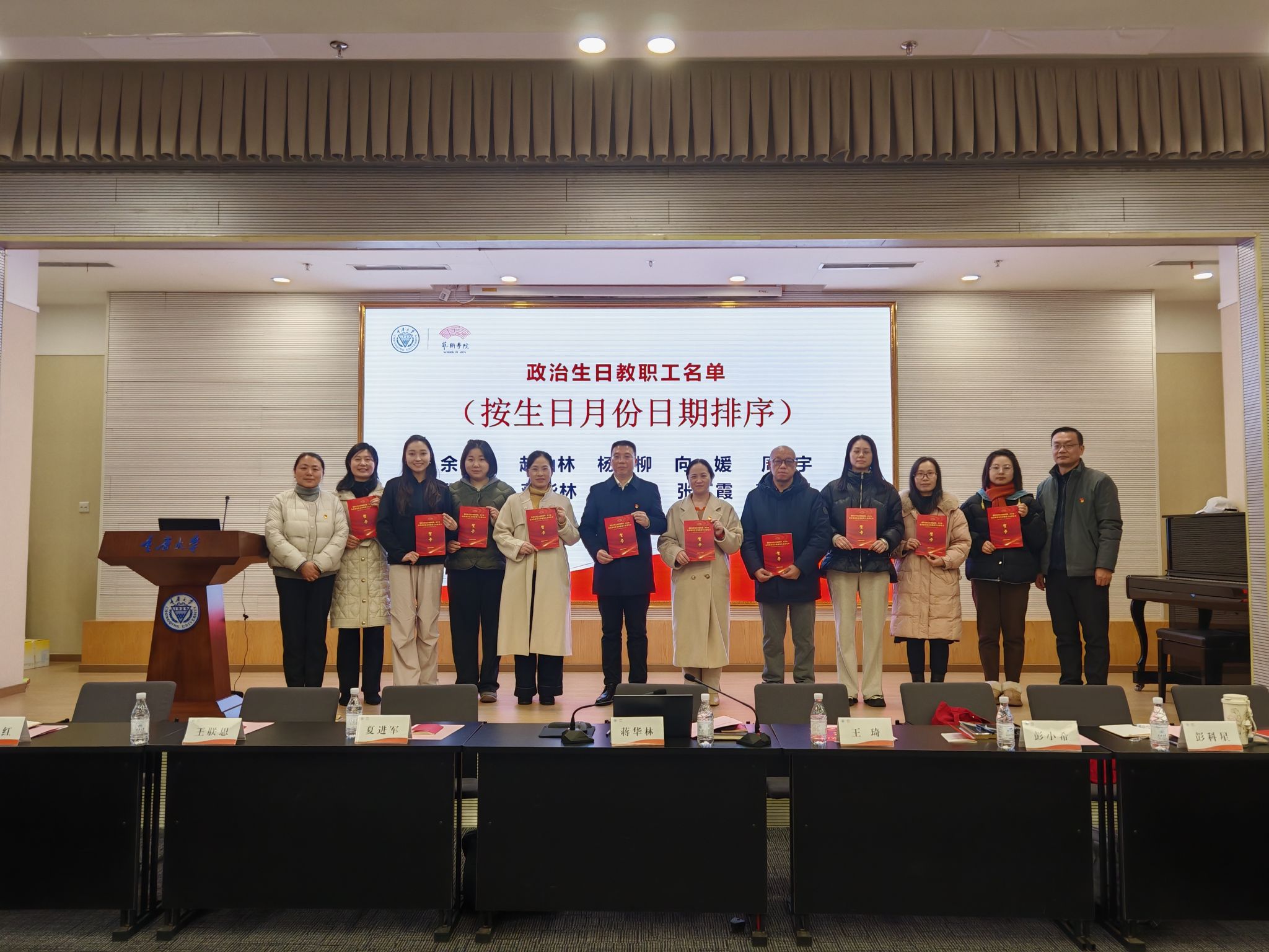 2025年度第2次教职工党员政治生日和自然生日座谈会(简称“双生会”)在虎溪校园图书馆1F-9会议室顺利举行,这是学院党委打造“崇德尚艺”党建品牌的一项重要活动。学院党委书记蒋华林主持会议并讲话,党委副书记、纪委书记王琦,副院长夏进军、彭小希,党委委员曲卫红、彭科星,分工会主席王朕思、副主席李杰等出席。2025年9月至2026年2月期间过政治生日和自然生日教职工40余人参加。