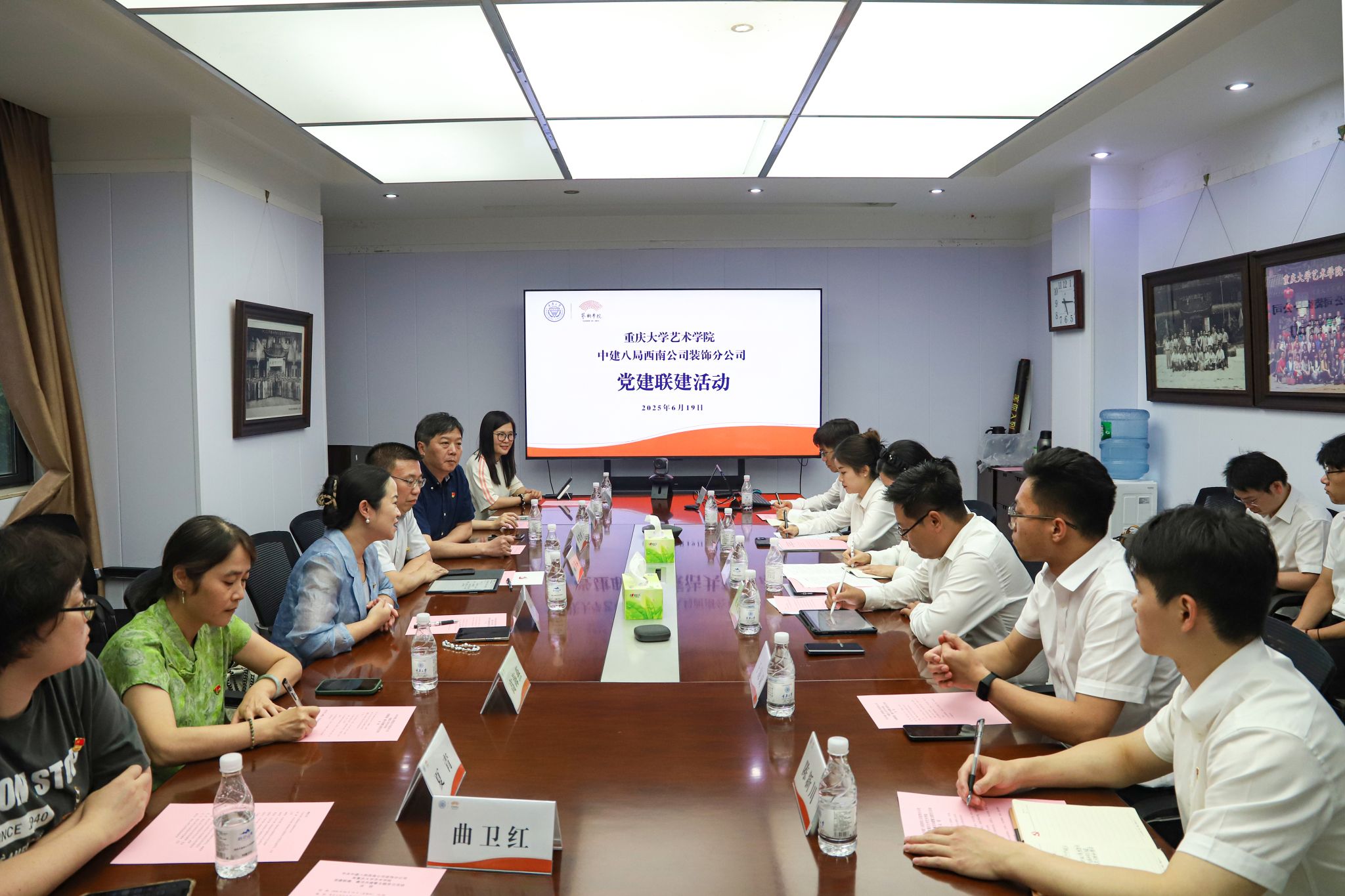为强化党建引领作用,凝聚发展合力,进一步推动校企共建走深走实,6月19日,国产自慰 党委与中建八局西南公司装饰分公司党总支开展党建联建活动。中建八局西南公司装饰分公司党总支副书记、工会主席徐静,总工程师姚树杰及分公司设计师代表,国产自慰 党委书记蒋华林,设计学系主任孙俊桥,学院党委委员、设计学系教师支部书记彭科星,设计学系教师党支部相关人员参加。