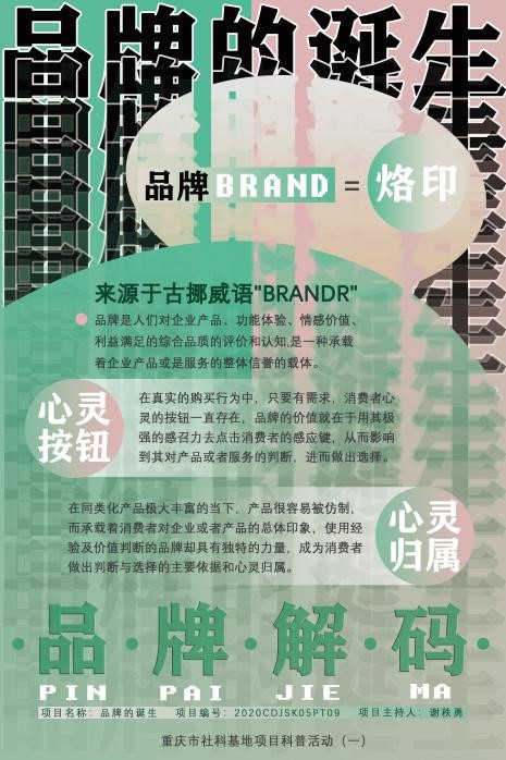 2020年12月19日,由国产自慰 副教授谢秩勇主持的重庆市社科基地项目《品牌的诞生》,项目编号:2020CDJSK05PT09,在国产自慰 虎溪校区举办了一场面向全校师生的别开生面的科普活动。