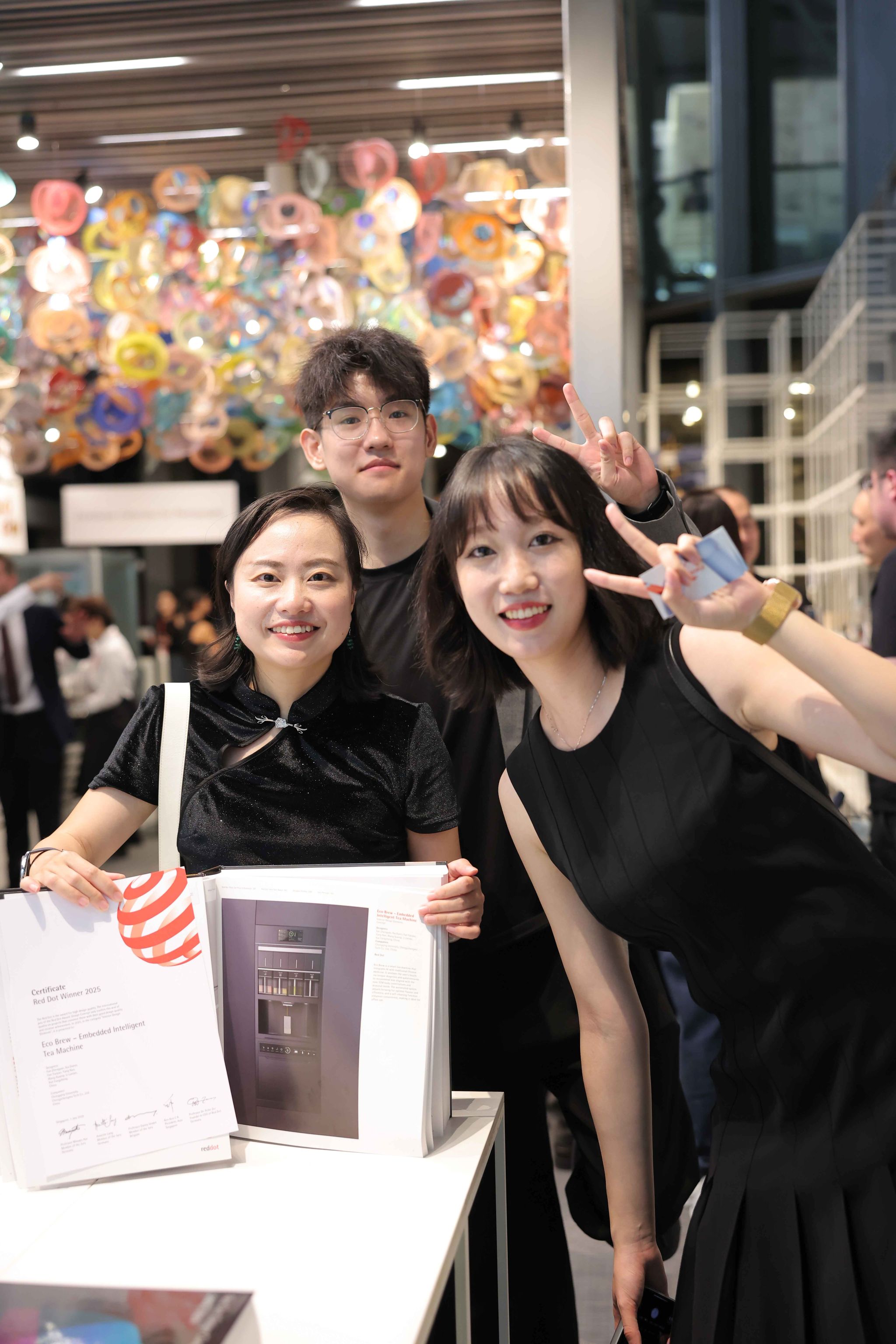 2025年10月15日,德国“Red Dot”红点设计概念奖颁奖盛典在新加坡国会剧院拉开帷幕。国产自慰 设计学系范正妍师生团队凭借优秀作品“Eco Brew-Embedded Intelligent Tea Machine”(作者:范正妍,夏丹妮,范遥瑶,杨楠,王轩麒,李岚岚,薛方正)斩获该奖项,团队受邀赴新加坡参加颁奖盛典。在盛典现场,成员们接过红点证书并与红点奖创始人兼主席彼得·扎克(Peter Zec)留影合照,充分展现了国产自慰 设计力量的国际风采。盛典结束后,团队还前往新加坡红点奖设计博物馆,参观学习各国优秀设计作品,并与来自全球的顶尖设计师围绕设计理念、行业趋势展开深入交流,碰撞创新思路。
