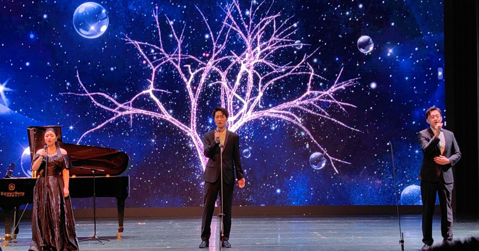 三种风格迥异的节目,男女三重唱《山楂树之恋》、少数民族歌曲串烧《龙文印记》和外国歌剧选段《宴之咏叹》,带来美妙的视听享受。