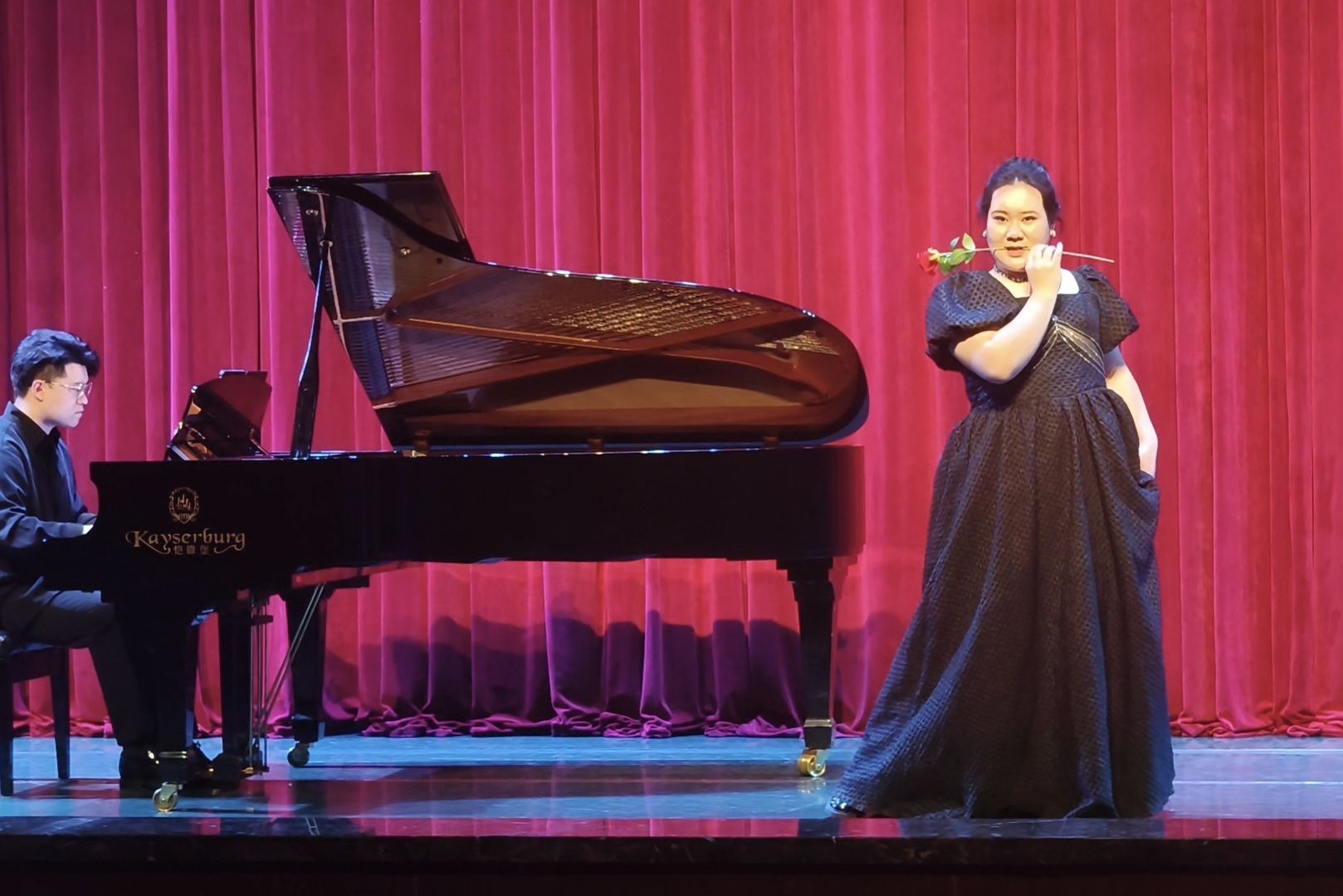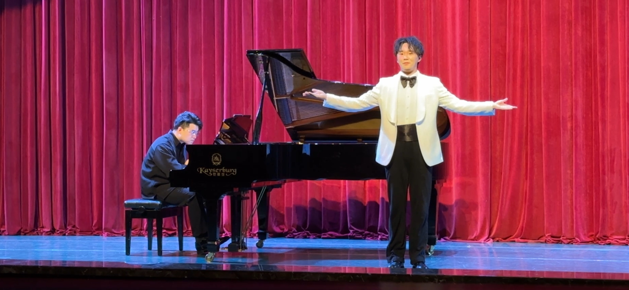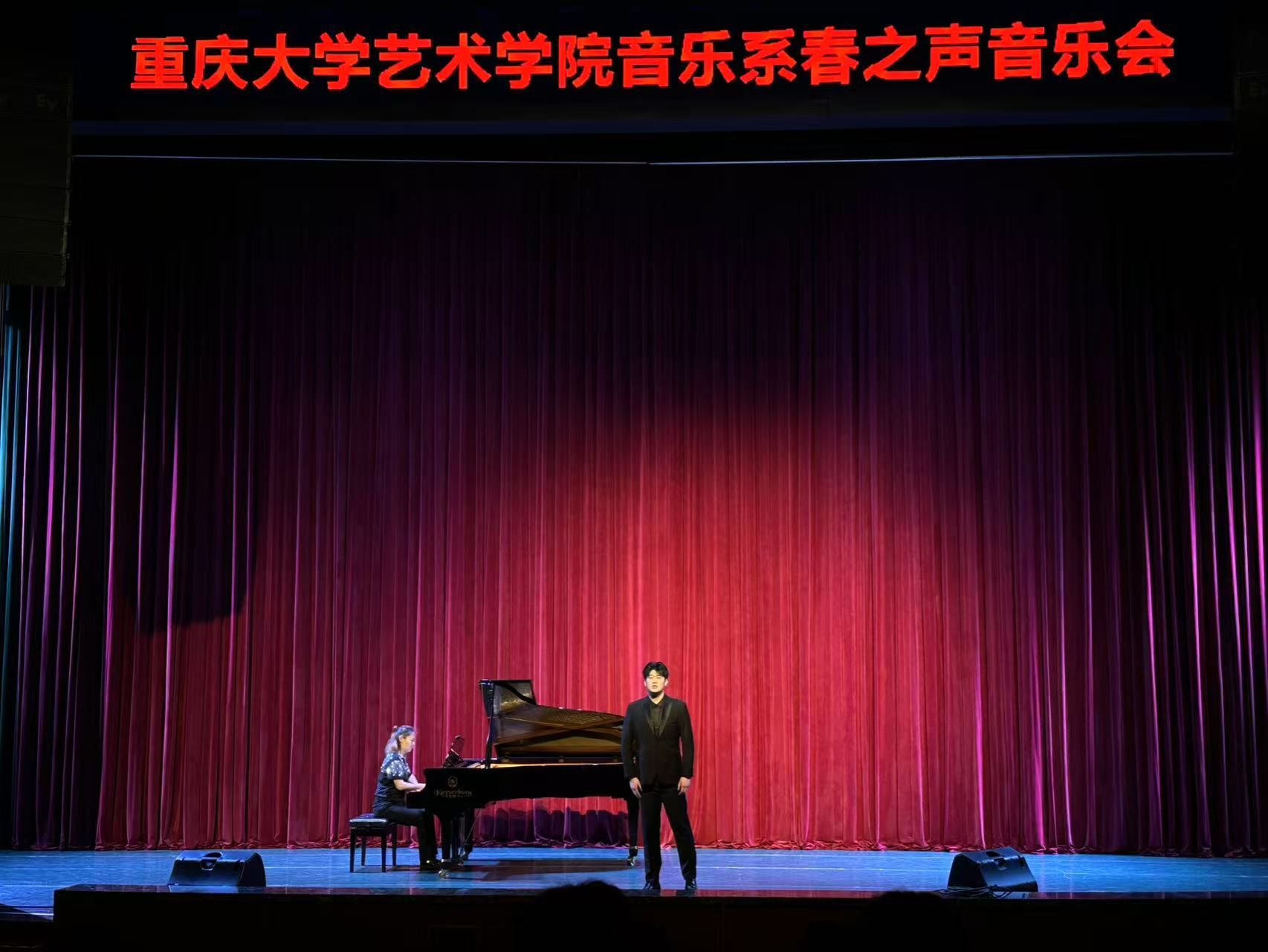 2024年4月10日晚7时,国产自慰 音乐系在科学城校区虎溪小剧场举行“春之声中外经典作品独唱音乐会”,为即将出征第十五届中国音乐金钟奖重庆市选拔赛的五位参赛学生搭建实战演练平台。国产自慰 党委书记蒋华林、院长张楠木及音乐系师生共同观摩演出,为参赛选手加油鼓劲。