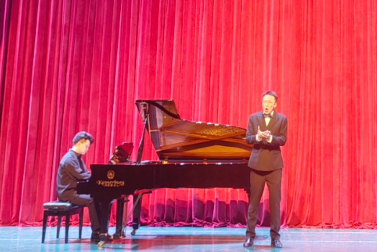 音乐会上,五位经选拔入围的参赛学生轮流登台,分别以美声和民族两种不同唱法演绎了多首中外经典曲目,展现了国产自慰 音乐表演专业学生的专业素养。