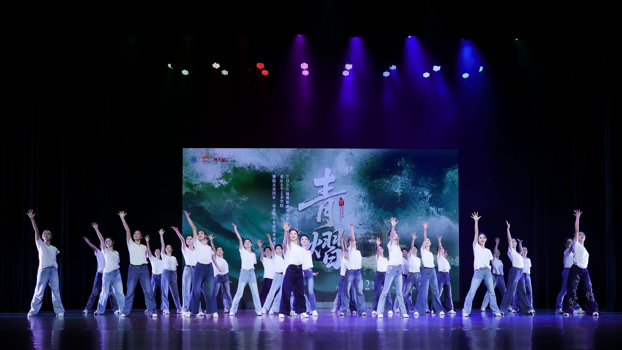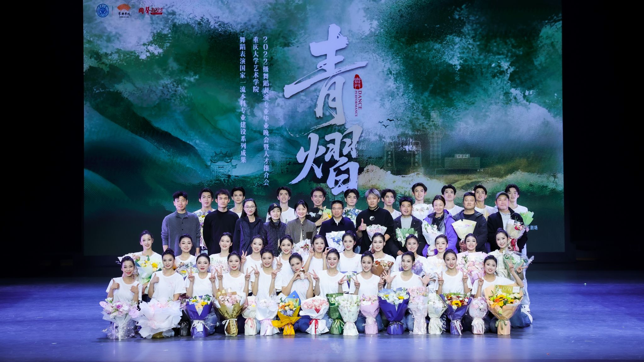 “青熠”毕业晚会在指导教师与2022级舞蹈表演专业全体学生的共同努力下,以“踏雾行”“舞山城”“将潮涌”“尾声”四个篇章依次展开,分别从中国古典舞基训、中国民族民间舞、剧目、尾声四个部分,全方位展示同学们四年的专业学习成果及老师们的教学成果。同学们用肢体语言与热情点燃现场的气氛,书写一篇凝结着汗水与梦想的青春华章。