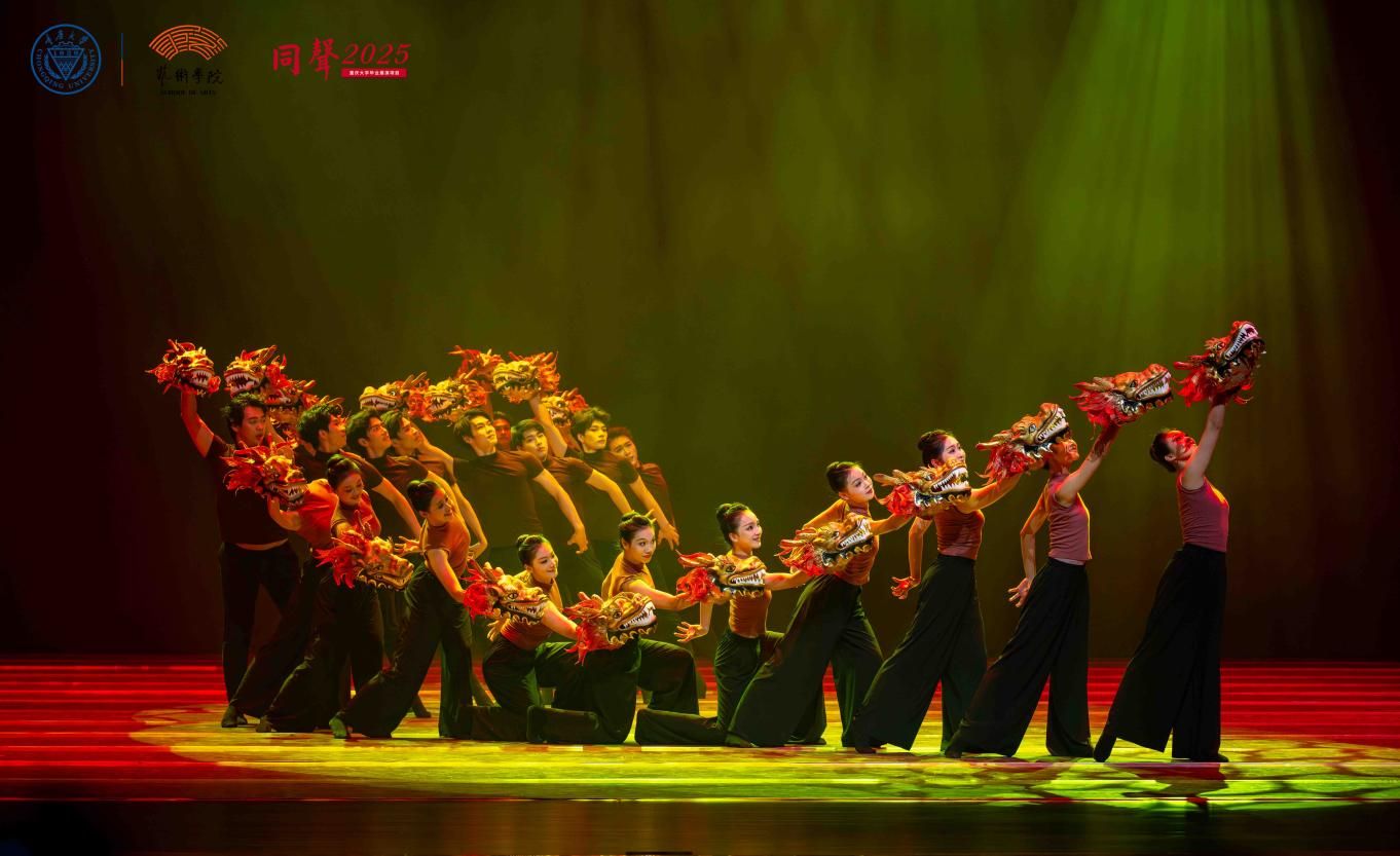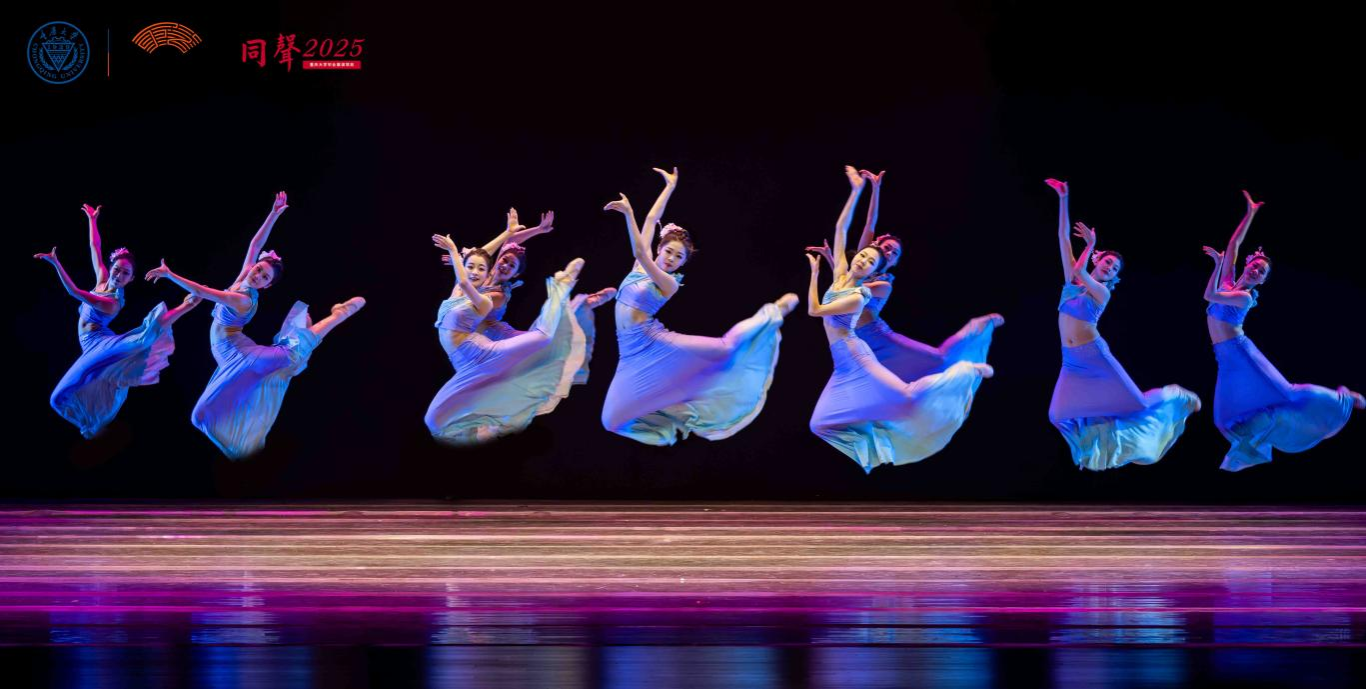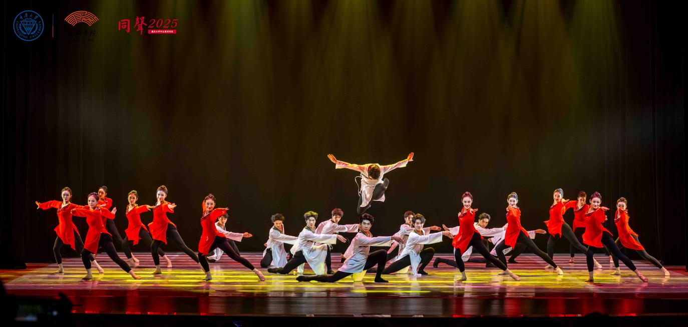 最后,在全体演员与校友代表的共同欢舞中,尾声《共赴华章》将晚会推向高潮,掌声不息,气氛热烈。