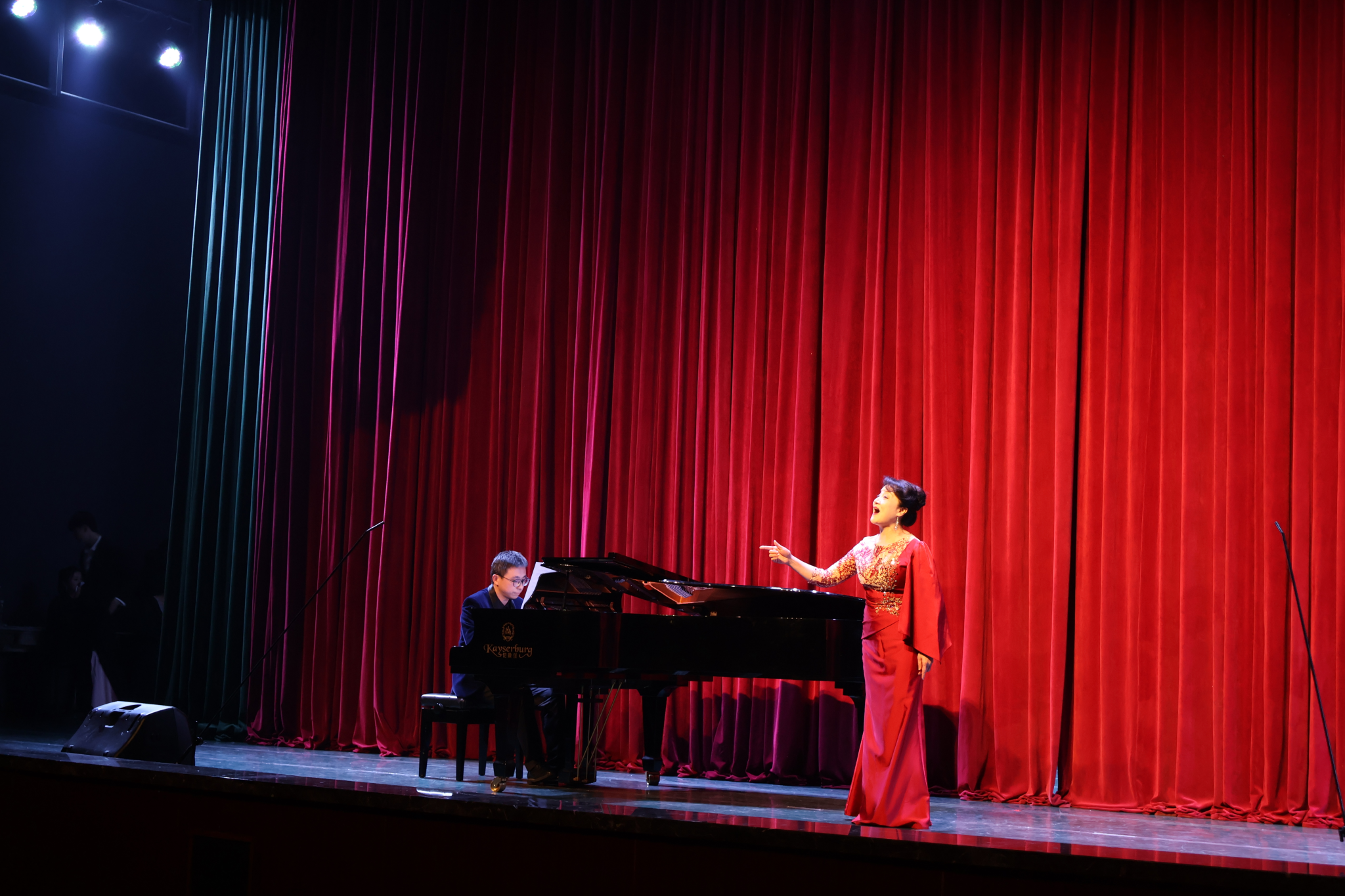 下半场的演出更精彩,高潮迭起。《嘉陵江上》《永远的花样年华》向观众们唱出了那个苦难岁月下人民怎样在共产党的领导下奋起反抗的决心以及共产党人不屈不挠的大无畏革命精神;《映山红》是电影《闪闪的红星》插曲,反映了老百姓对红军的思念和期盼;《嘉陵江上》是一首创作于重庆的抗日救亡歌曲,歌曲不仅表达了对失去家园的悲痛和对侵略者的仇恨,还寄托了收复失地的决心和对故乡亲人的深切怀念;《永远的花样年华》是现代民族歌剧《‌野火春风斗古城》中的一个主要唱段,该歌剧以‌冀中古城的抗日斗争为背景,讲述了共产党员金环等地下工作者在敌占区与日伪军展开生死搏斗的故事,《永远的花样年华》是金环面对日军英勇牺牲前的咏叹,歌声婉转又高亢。