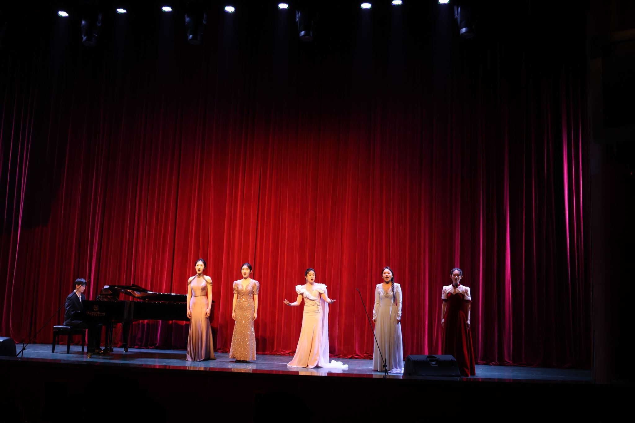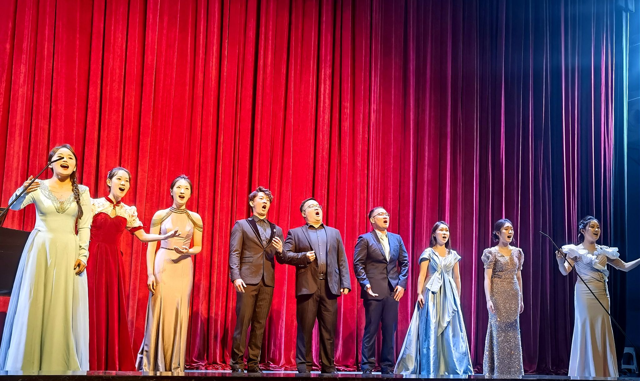 “灯火里的中国”音乐会为厚植爱国主义情怀,让其在校园中蔚然成风;为传承红色经典文化,使红色基因在历史的脉络中赓续绵延;为绘就校园文艺生活的斑斓画卷,使其绽放多元魅力。在众多的红色经典作品中,陈燕老师师生共同精挑细选出13首既旋律优美、耳熟能详又感人肺腑的经典歌曲和歌剧选段。